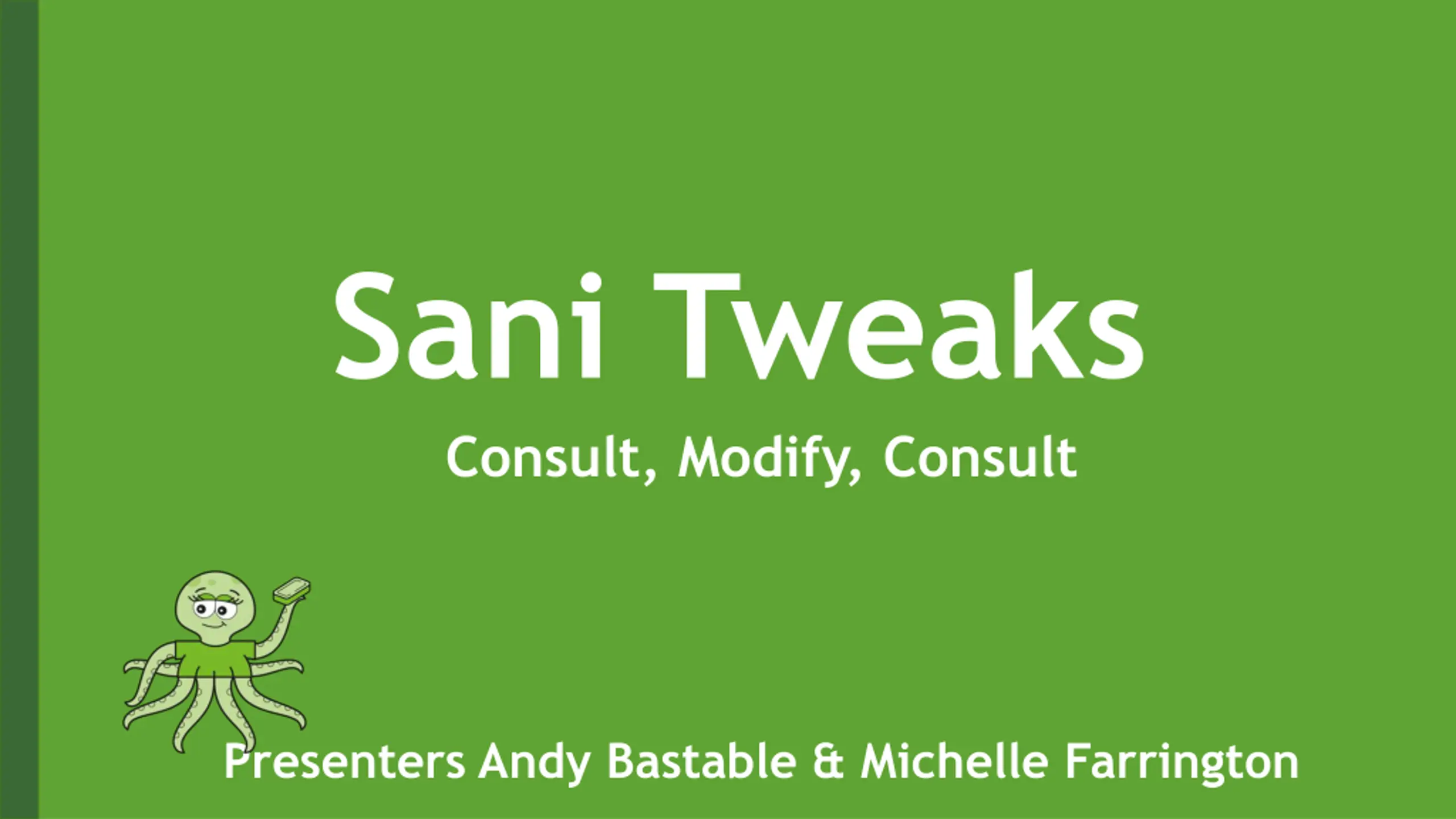 Sani Tweaks Consult, Modify, Consult Presenters Andy Bastable & Michelle Farrington