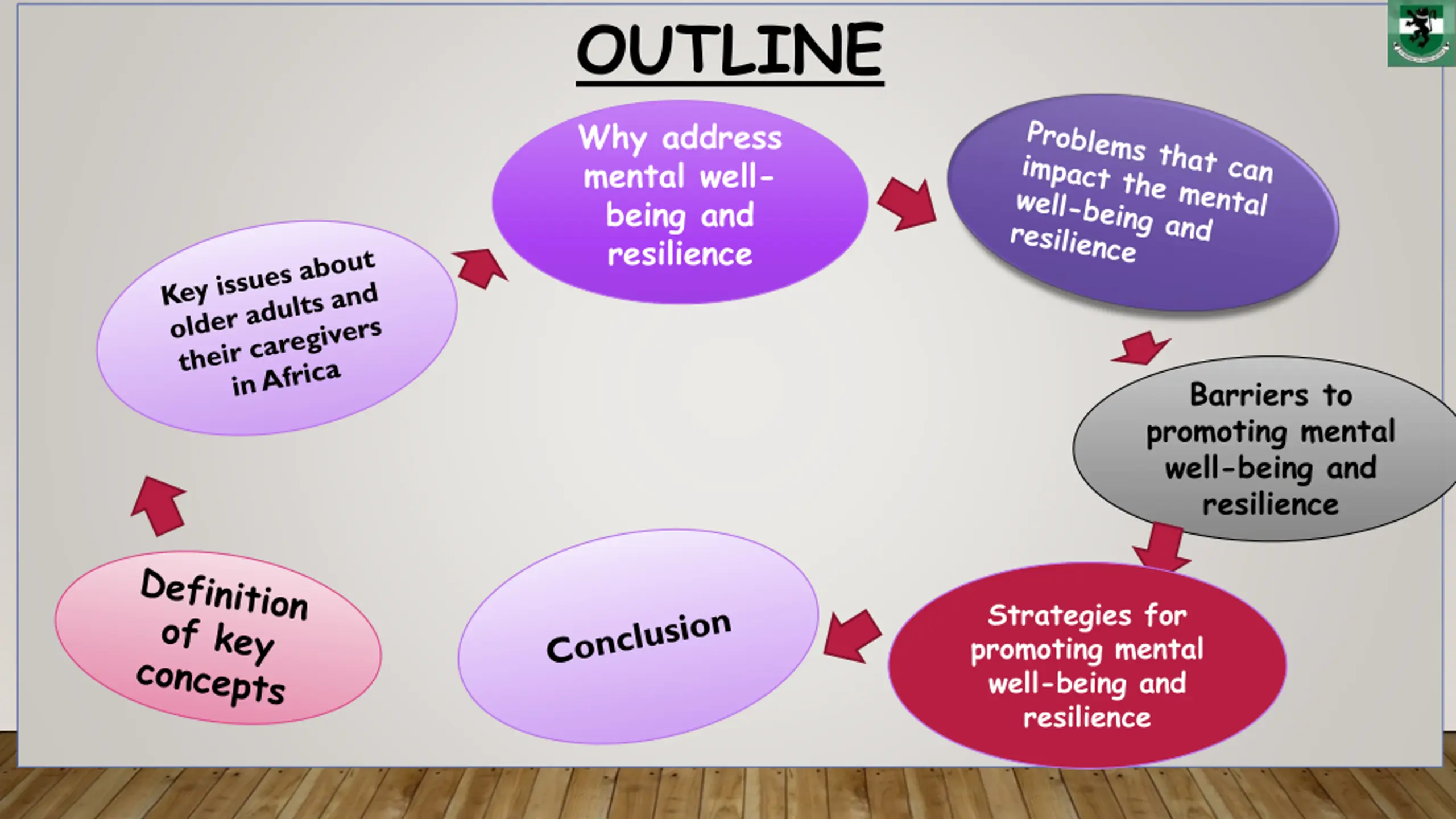 This presentation by Professor Uzoma O. Okoye addresses the challenges and strategies for promoting mental well-being and resilience among older adults and their caregivers in Africa. It covers the definition of terms, barriers, formal and informal social support, caregiving issues, and the importance of addressing mental health in older populations.
