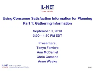 IL Network Survey Procedures IL Network Survey Procedures Facilitated by the SILC using agreed upon accessible online survey tool Completed every two months for two cycles then IL Network will review process and frequency moving forward Results of each survey will be shared with IL Network at the next SPIL workgroup meeting All data will be shared with all IL Network members. However, open ended question responses may be reworded to de-identify specifically named individuals The IL Network will compare survey data with previous data and discuss alignment with PET skills and IL Network values. Strengths will be reinforced, and action steps will be created for any needs KIPHIC 2022