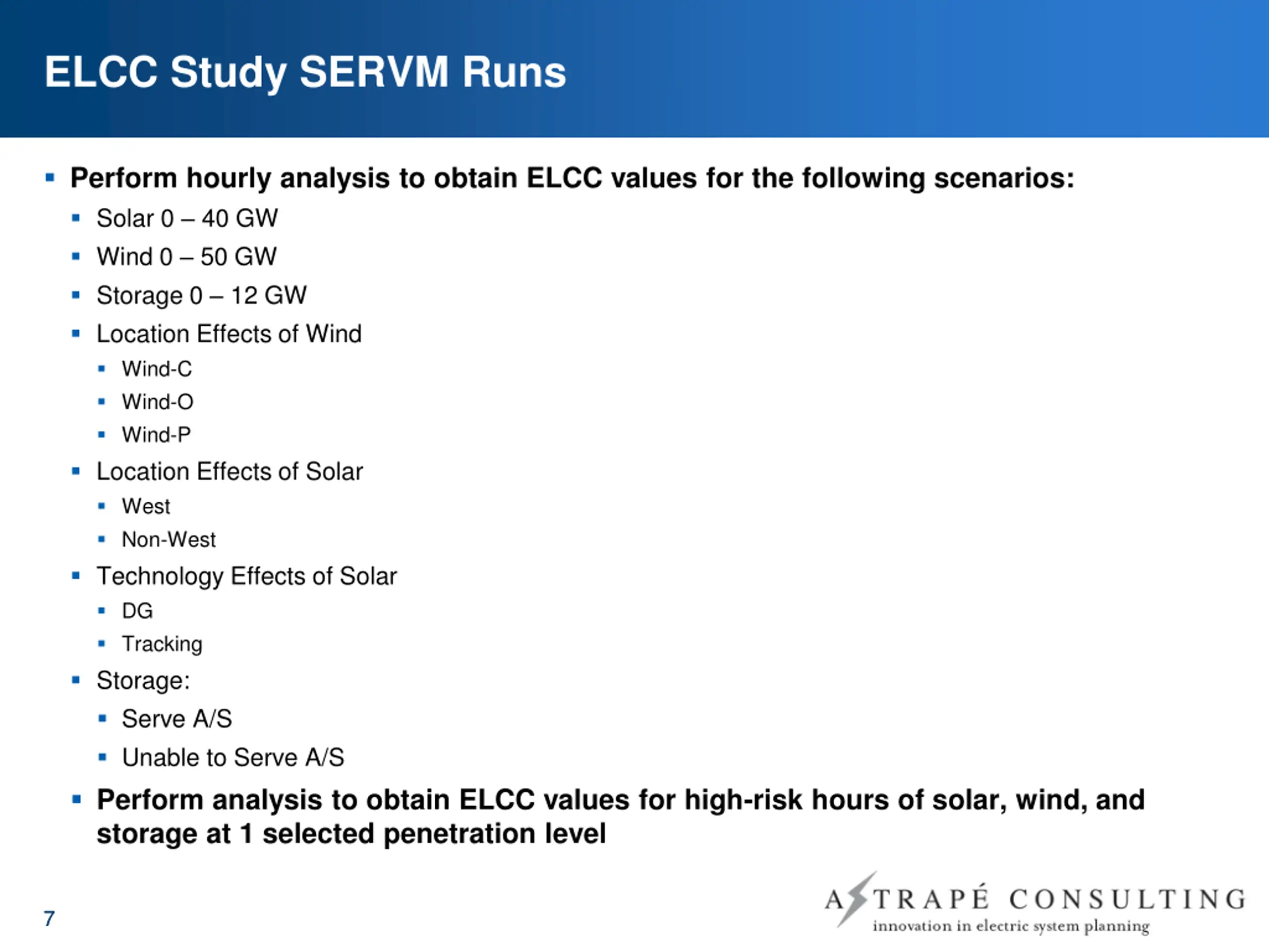ELCC Study SERVM Runs Perform hourly analysis to obtain ELCC values for the following scenarios: Solar 0 40 GW Wind 0 50 GW Storage 0 12 GW Location Effects of Wind Wind-C Wind-O Wind-P Location Effects of Solar West Non-West Technology Effects of Solar DG Tracking Storage: Serve A/S Unable to Serve A/S Perform analysis to obtain ELCC values for high-risk hours of solar, wind, and storage at 1 selected penetration level 7 7