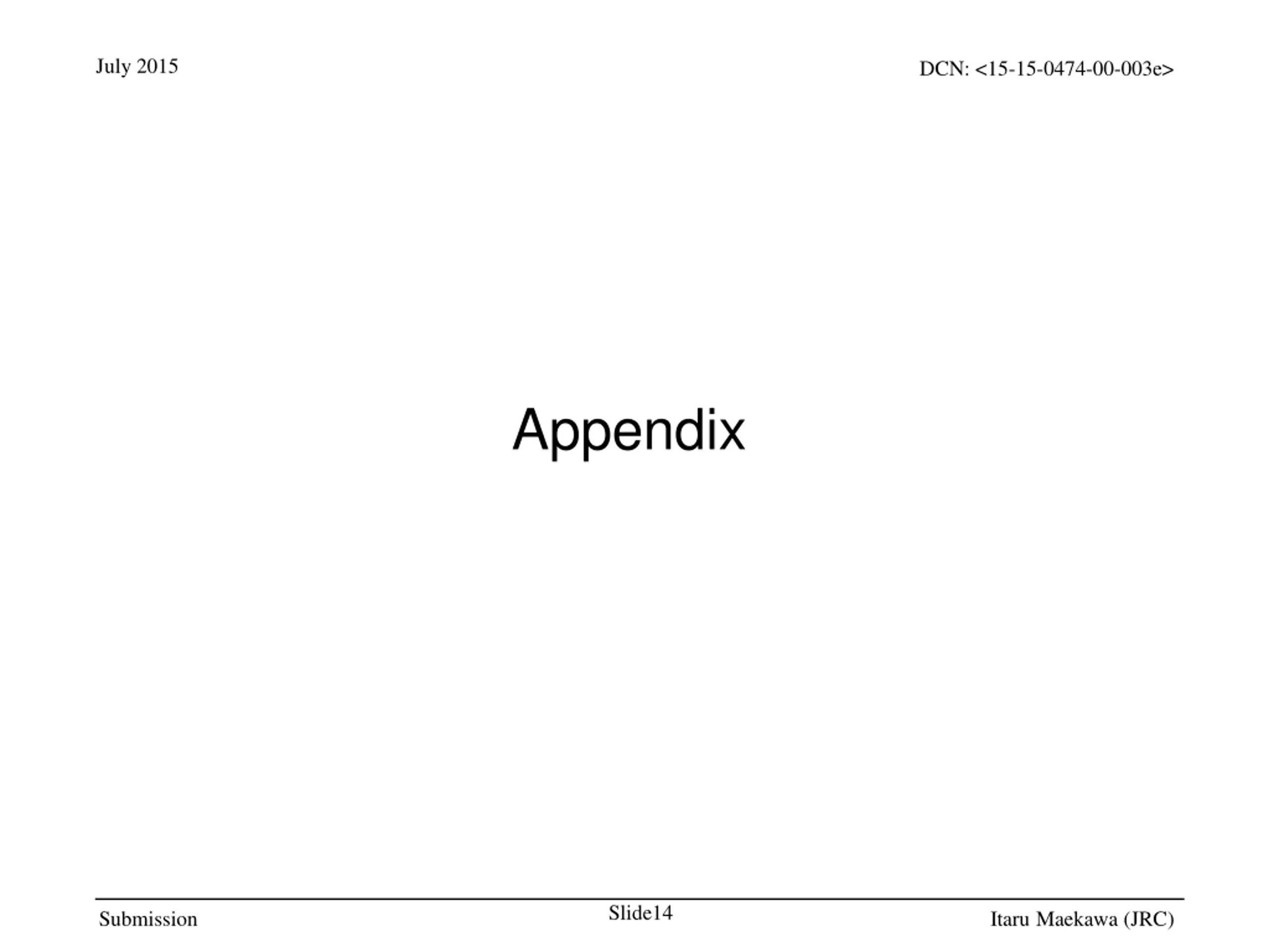 July 2015 DCN: <15-15-0474-00-003e> Appendix Slide14 Submission Itaru Maekawa (JRC)