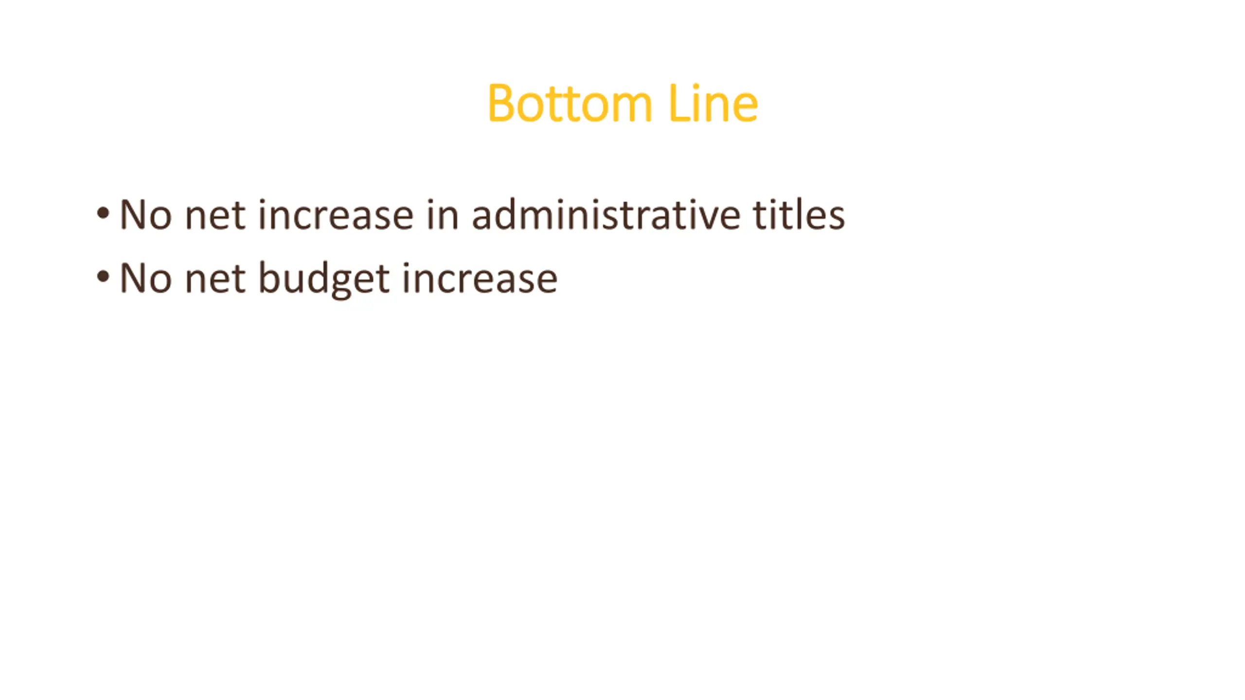 Bottom Line Bottom Line No net increase in administrative titles No net budget increase