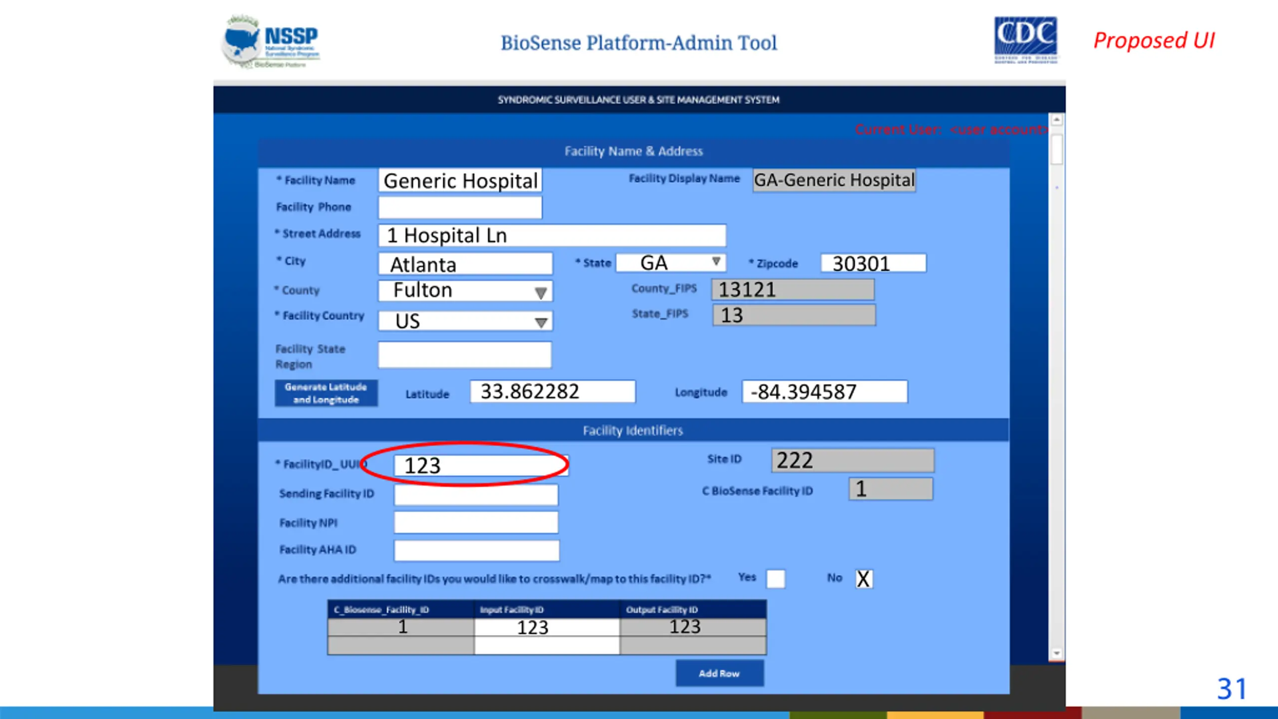 Proposed UI Example 2: Update FacilityID_UUID 29