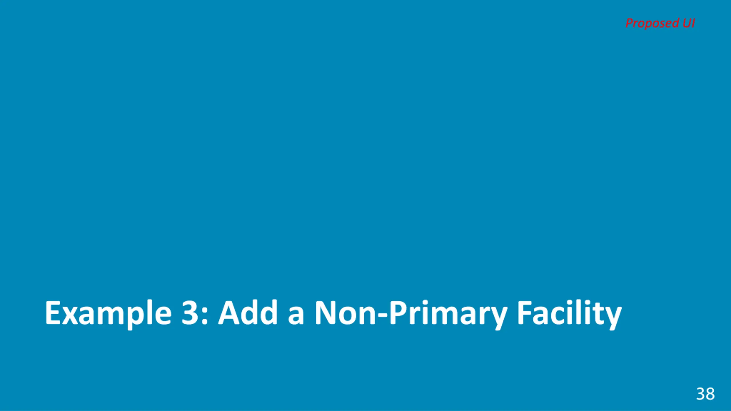 Proposed UI Example 3: Add a Non-Primary Facility 38