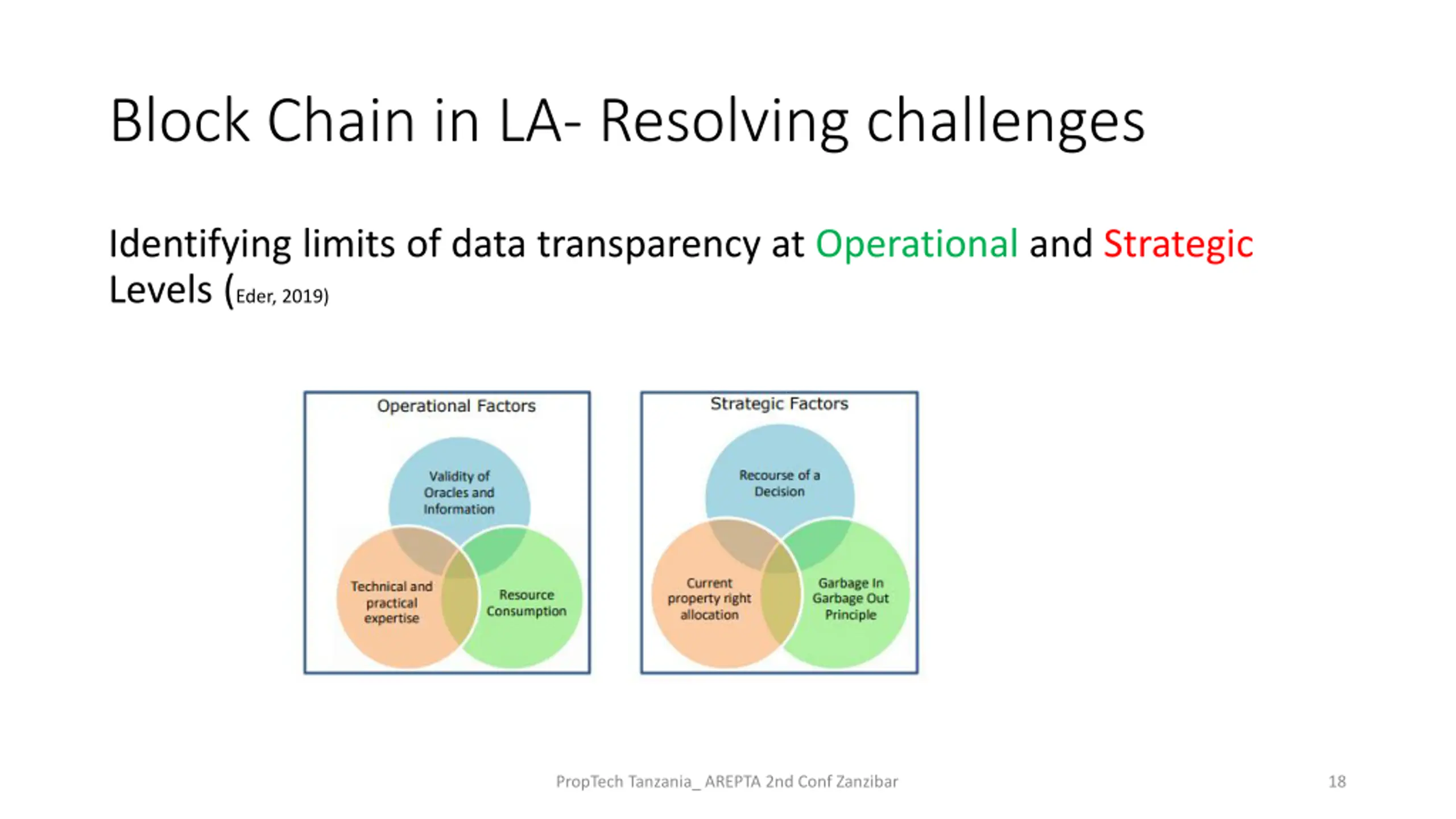 Block Chain in LA- Resolving challenges Identifying limits of data transparency at Operational and Strategic Levels (Eder, 2019) PropTech Tanzania_ AREPTA 2nd Conf Zanzibar 18