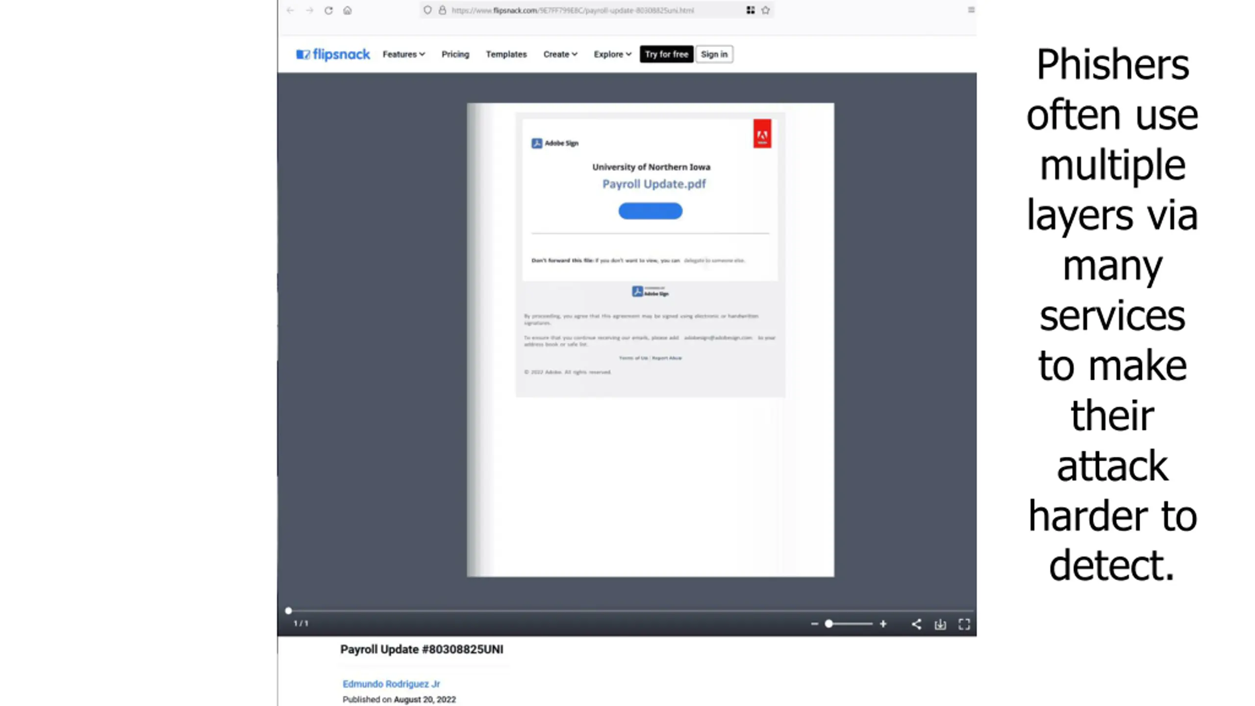 Phishers often use multiple layers via many services to make their attack harder to detect.