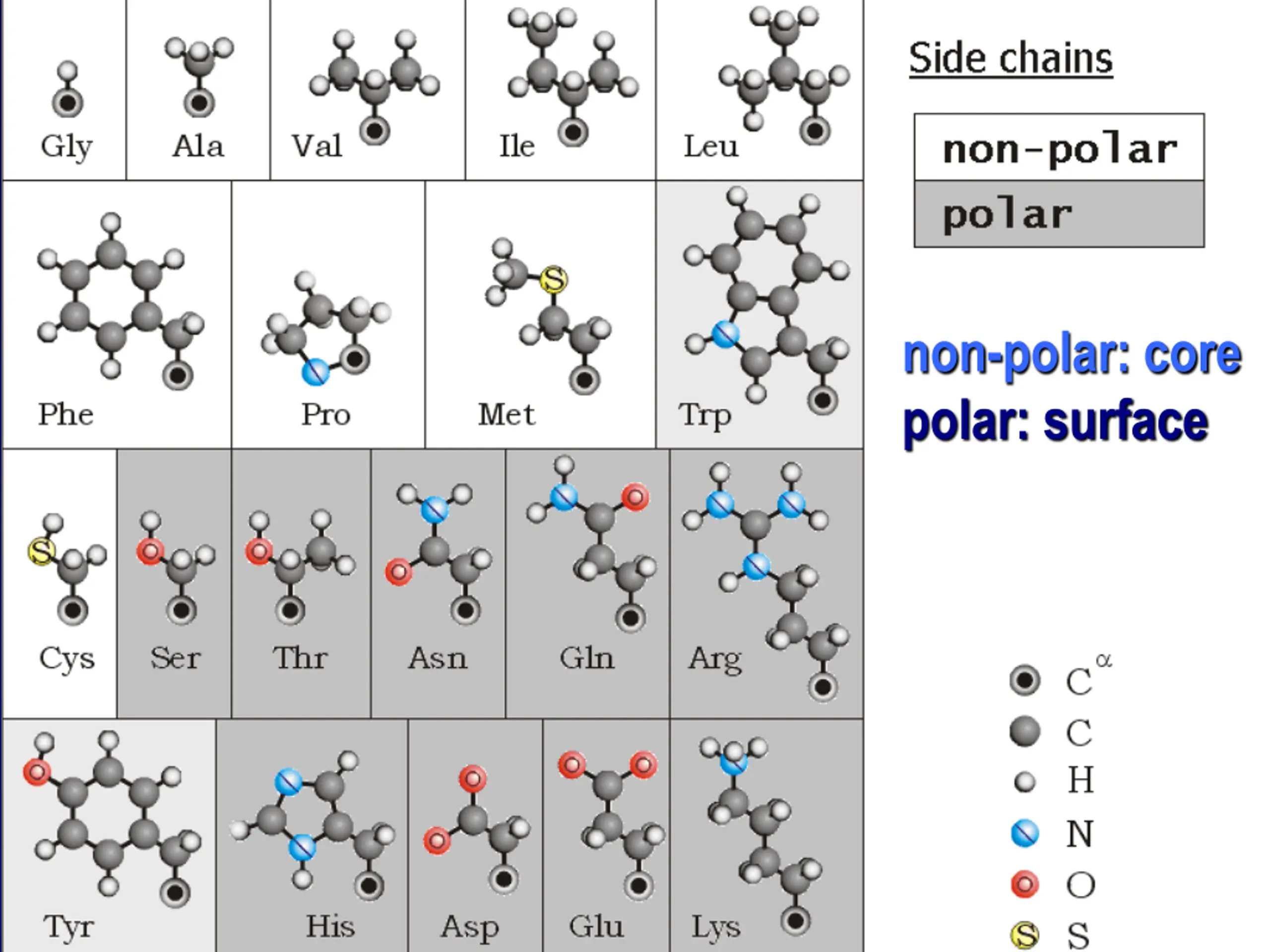 non-polar: core polar: surface