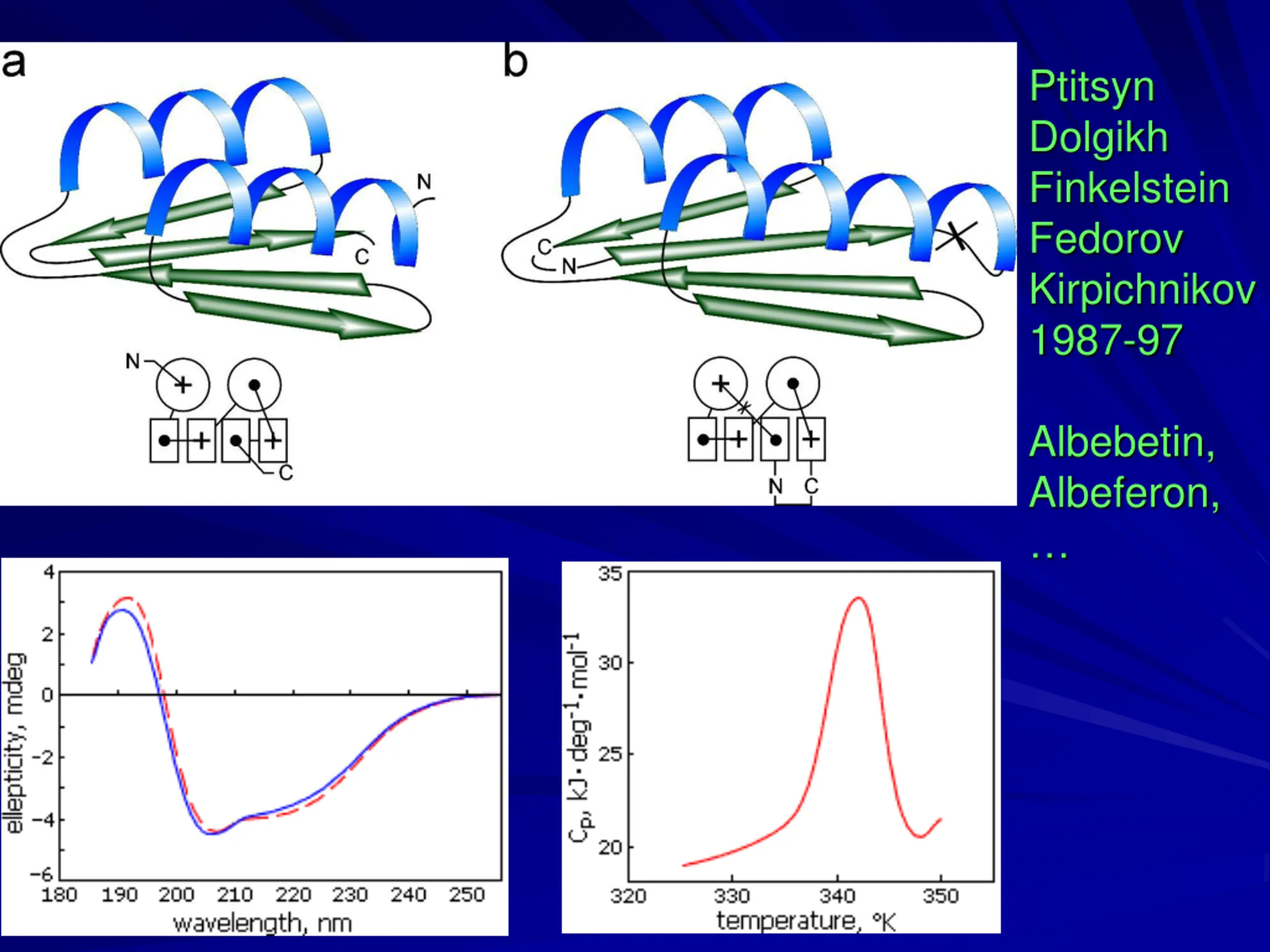 Ptitsyn Dolgikh Finkelstein Fedorov Kirpichnikov 1987-97 Albebetin, Albeferon,