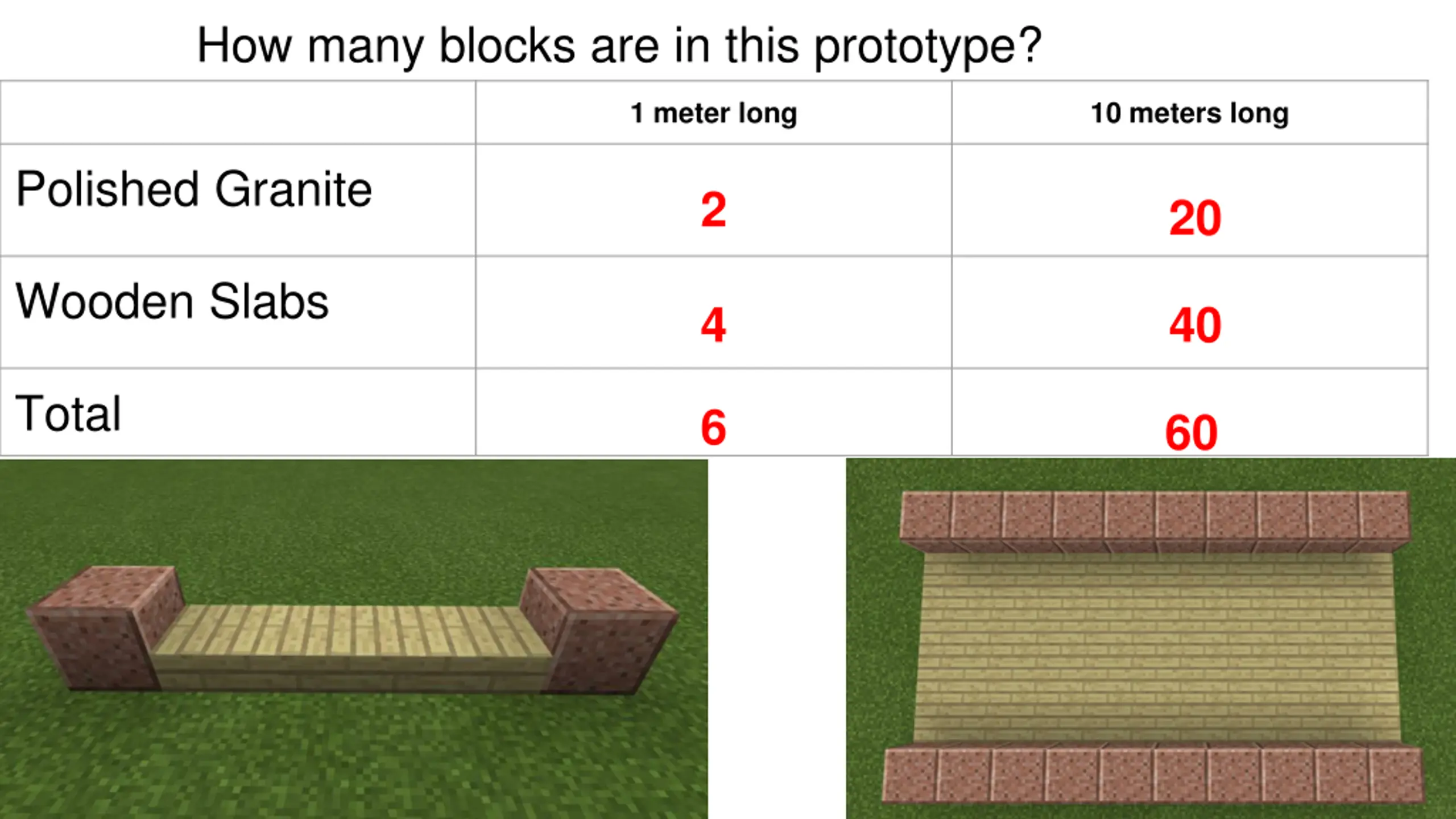 How many blocks are in this prototype? 1 meter long 10 meters long Polished Granite 2 20 Wooden Slabs 4 40 Total 6 60