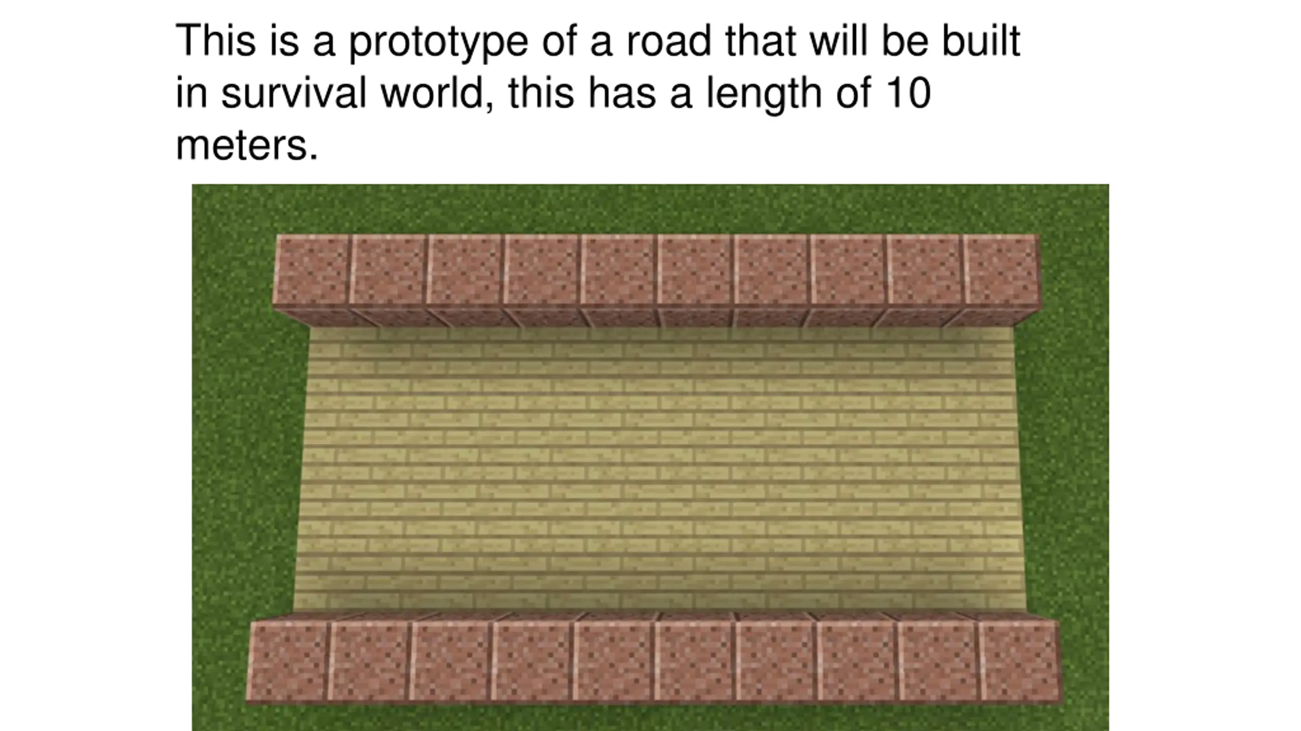 This is a prototype of a road that will be built in survival world, this has a length of 10 meters.
