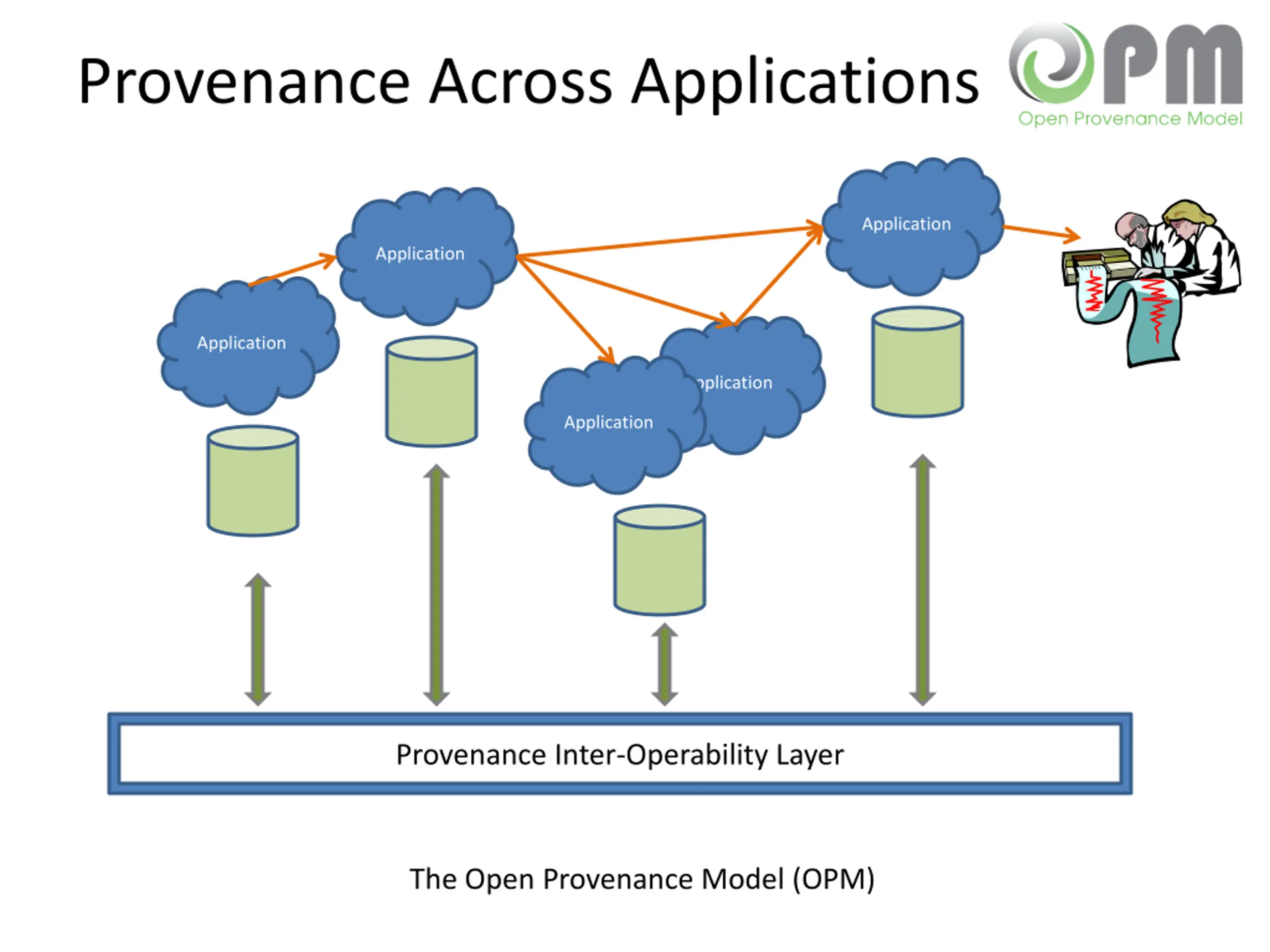Provenance Across Applications Application Application Application Application Application Provenance Inter-Operability Layer The Open Provenance Model (OPM)