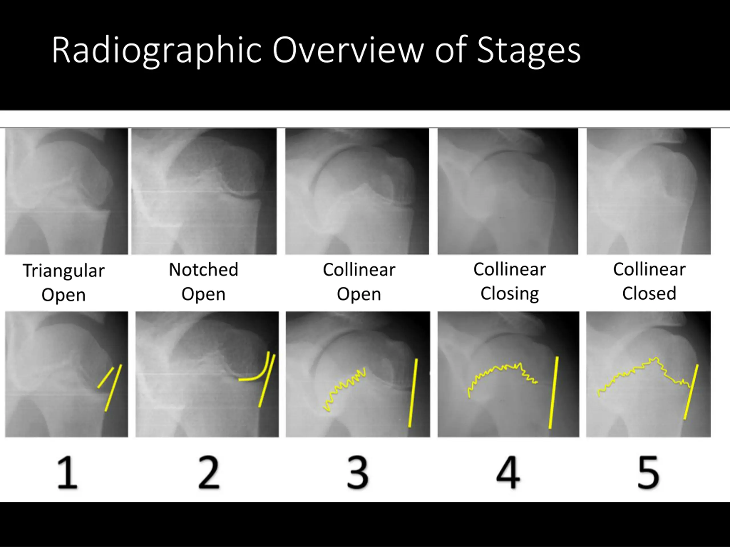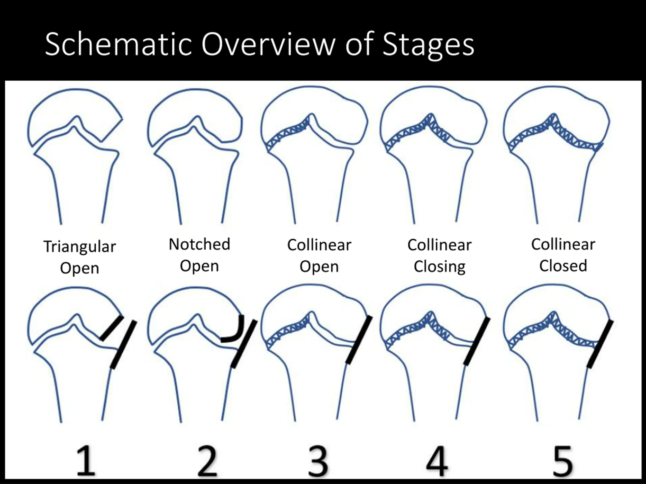 Radiographic Overview of Stages Collinear Closing Collinear Closed Notched Open Collinear Open Triangular Open