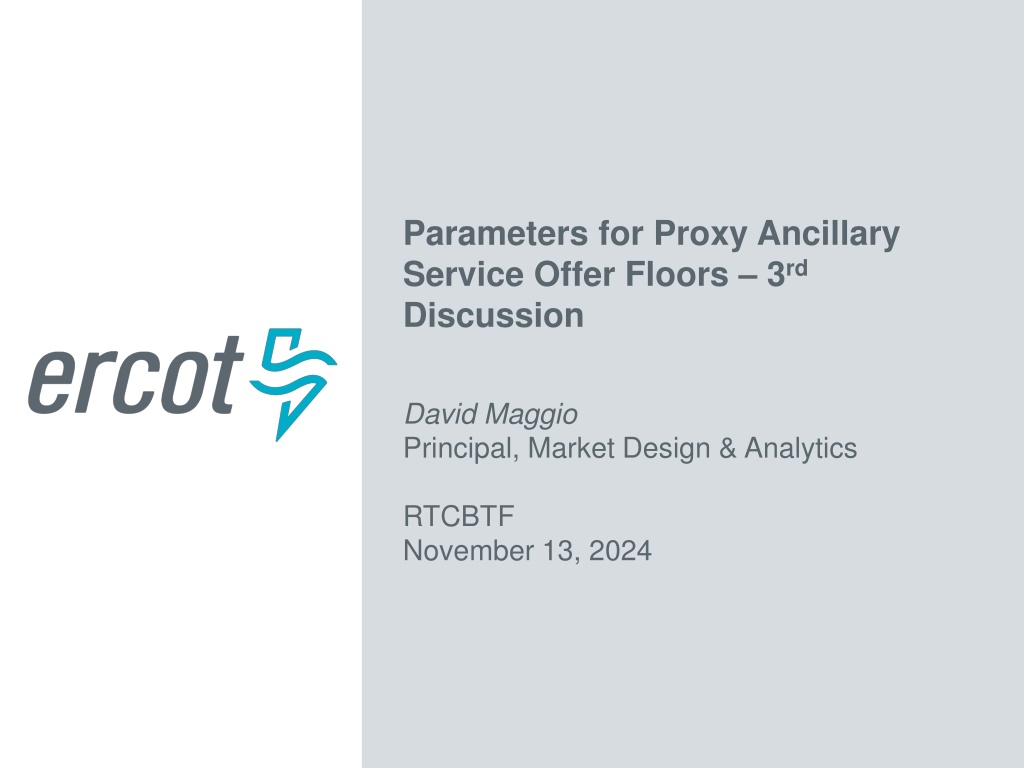 Parameters for Proxy Ancillary Service Offer Floors 3rd Discussion David Maggio Principal, Market Design & Analytics RTCBTF November 13, 2024