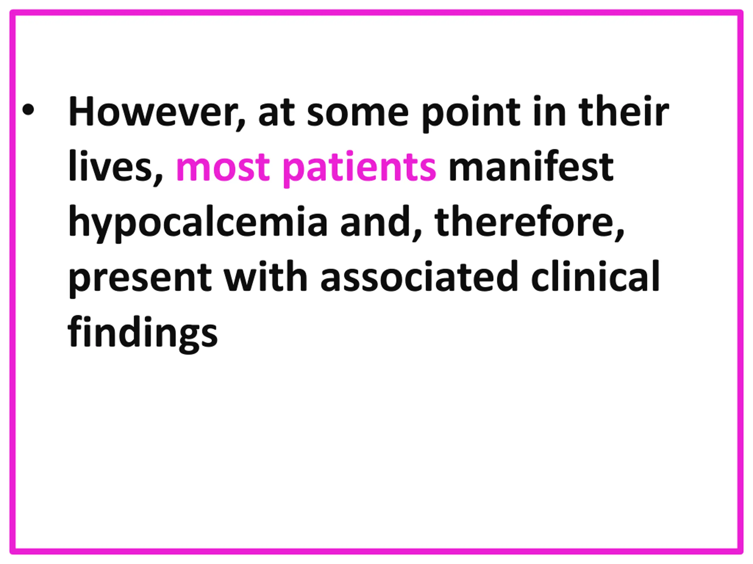 However, at some point in their lives, most patients manifest hypocalcemia and, therefore, present with associated clinical findings