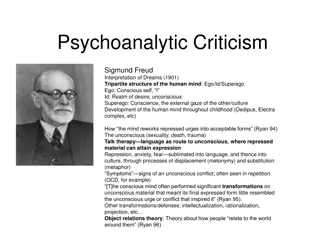 People are aware of some, but not all, of the ways in which they think, feel, and behave. Consider Ms J and Ms K: Ms J is a 35-year-old woman who presents for therapy saying, I have so much trouble feeling good about myself. I ve always been like that, ever since I was a child. It s something I d like to work on. Ms K is a 35-year-old woman who presents for therapy saying, My husband said that it was either therapy or divorce. He says that I don t listen to him. Why should I? He drones on all the time about his work accounting what could be more boring? By the way, you need a new receptionist. She mispronounced my name twice not too bright. Ms J is conscious that she has difficulties with self-esteem, even if she s not aware of why she does. Conversely, we can hypothesize that Ms K has unconscious difficulties with self-esteem, which are suggested by her tendency to belittle others in order to feel good about herself. When we think psychodynamically, we are interested in both conscious and unconscious patterns.