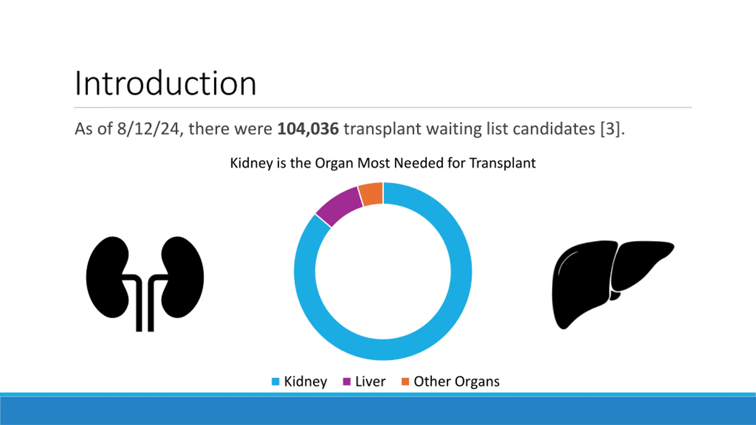 Introduction As of 8/12/24, there were 104,036 transplant waiting list candidates [3]. Kidney is the Organ Most Needed for Transplant Kidney Liver Other Organs