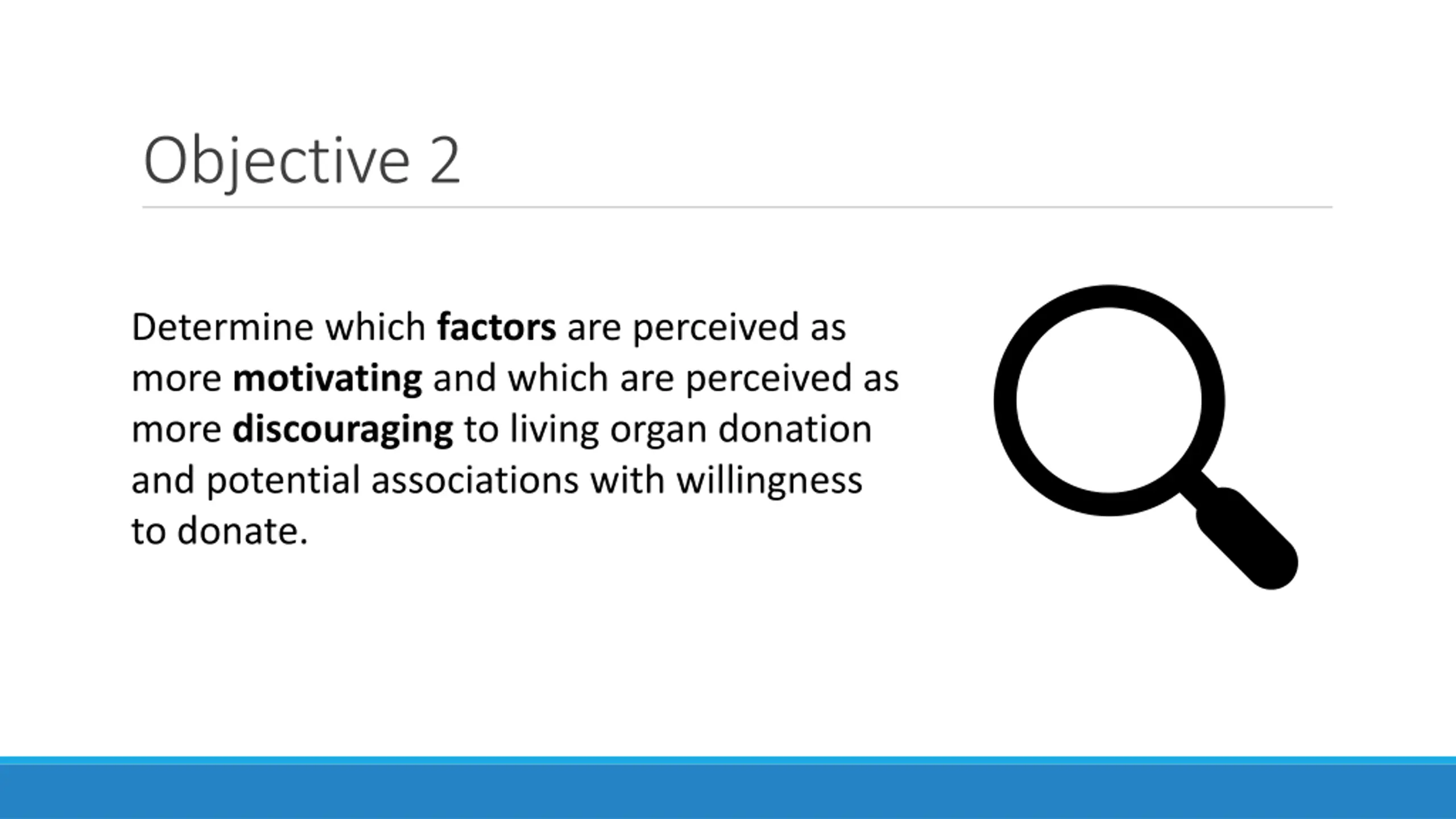 Objective 2 Determine which factors are perceived as more motivating and which are perceived as more discouraging to living organ donation and potential associations with willingness to donate.