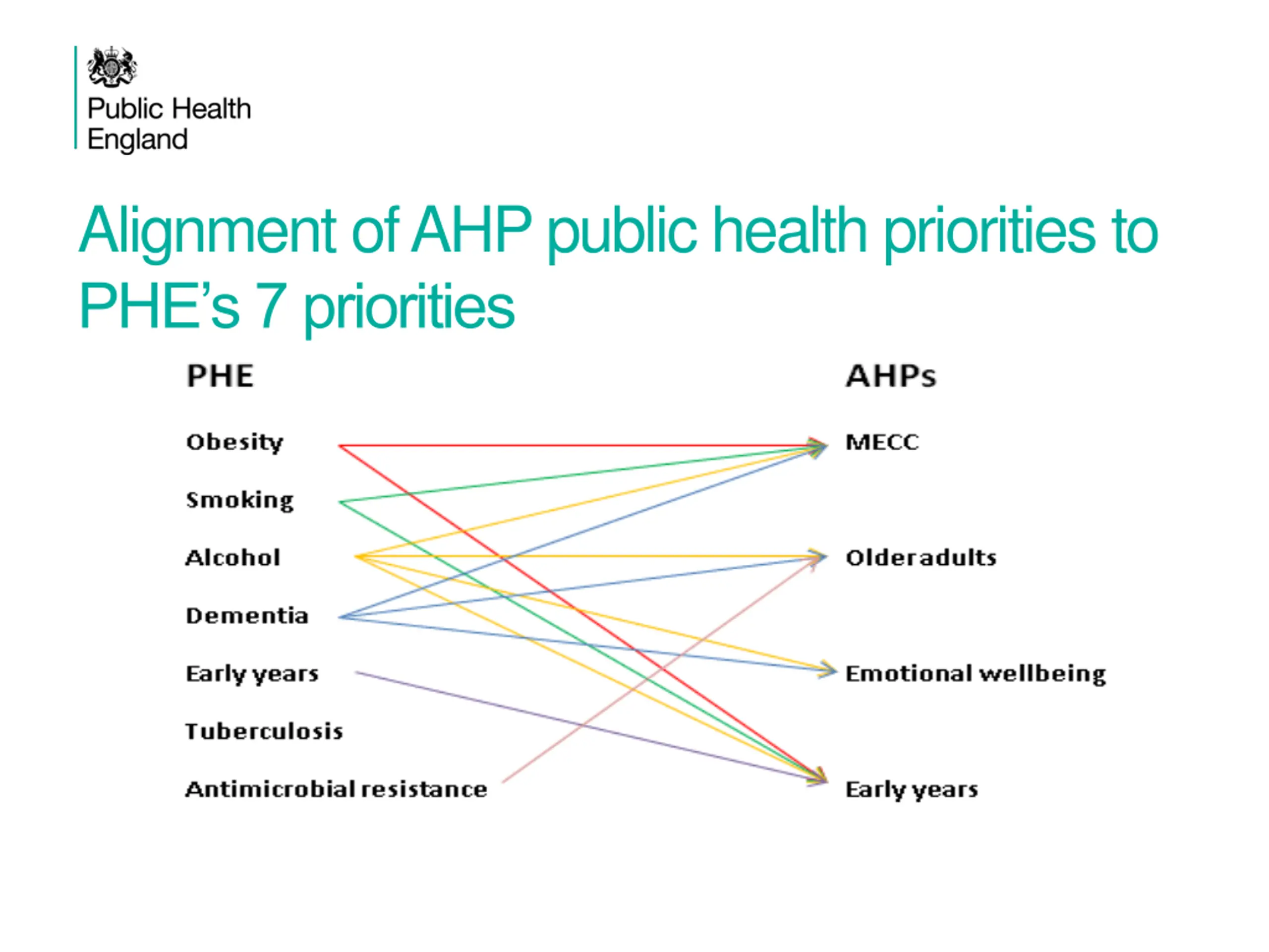 Alignment of AHP public health priorities to PHE s 7 priorities sustainability