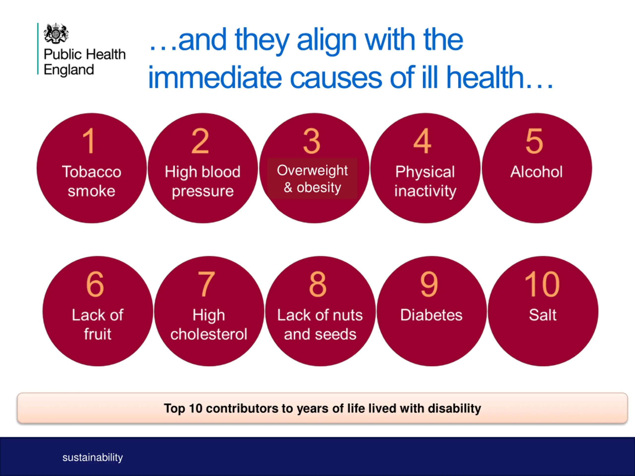 and they align with the immediate causes of ill health Overweight & obesity Top 10 contributors to years of life lived with disability sustainability