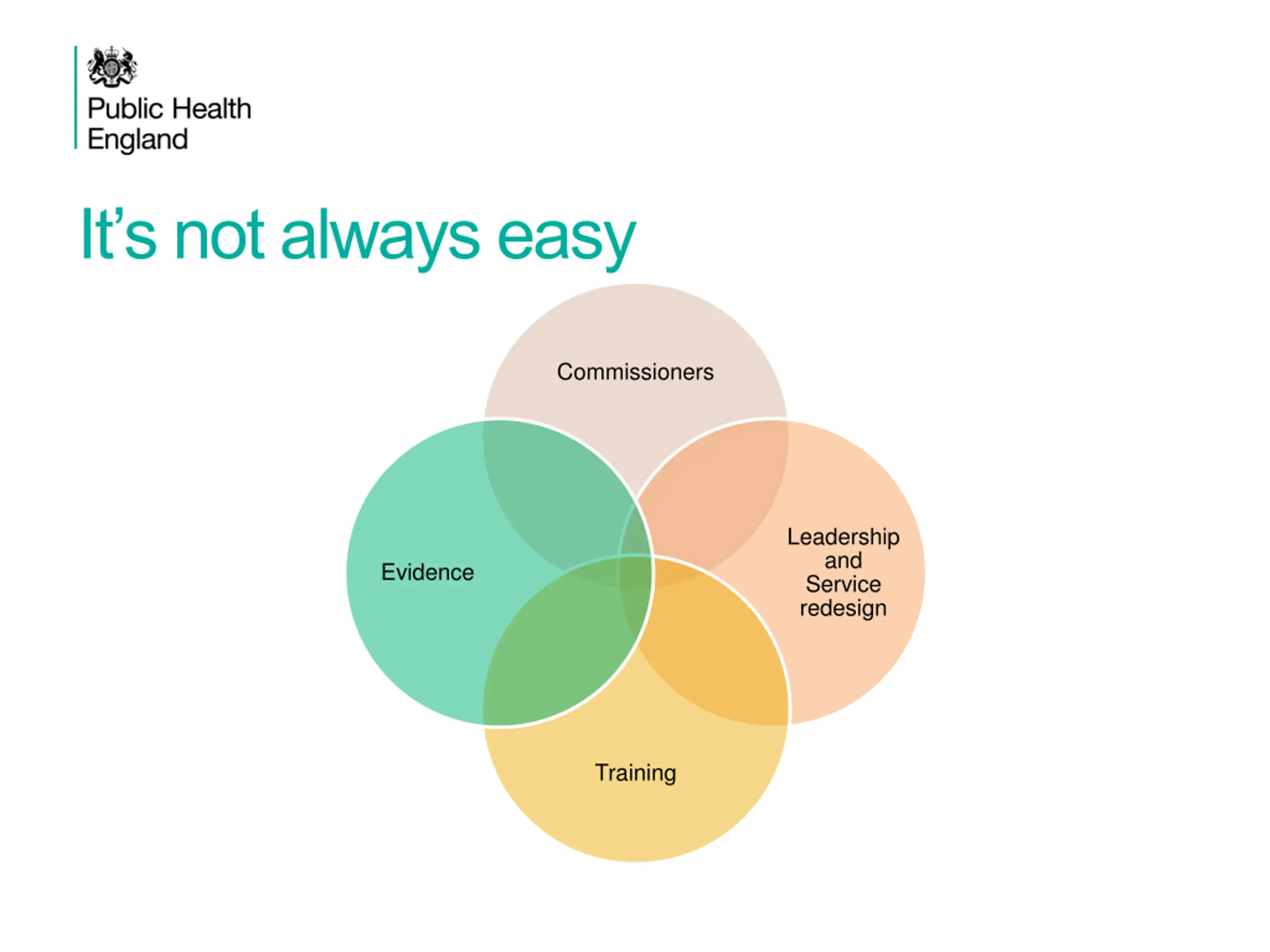 Its not always easy Commissioners Leadership and Service redesign Evidence Training sustainability