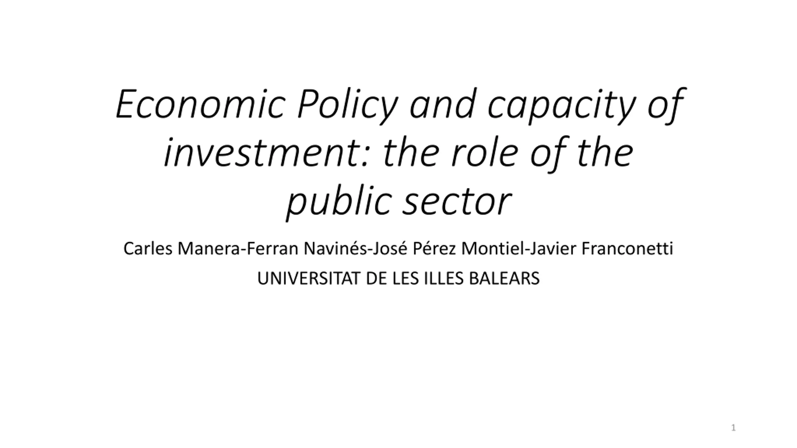 Economic Policy and capacity of investment: the role of the public sector Carles Manera-Ferran Navin s-Jos P rez Montiel-Javier Franconetti UNIVERSITAT DE LES ILLES BALEARS 1