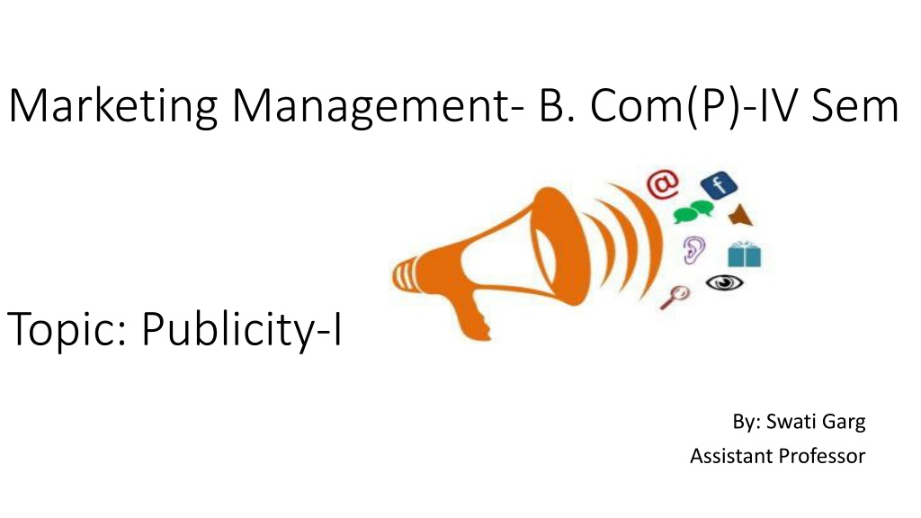 Marketing Management- B. Com(P)-IV Sem Topic: Publicity-I By: Swati Garg Assistant Professor