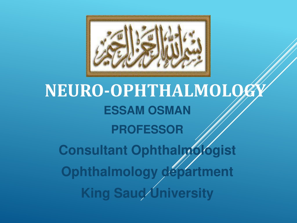 NEURO-OPHTHALMOLOGY ESSAM OSMAN PROFESSOR Consultant Ophthalmologist Ophthalmology department King Saud University