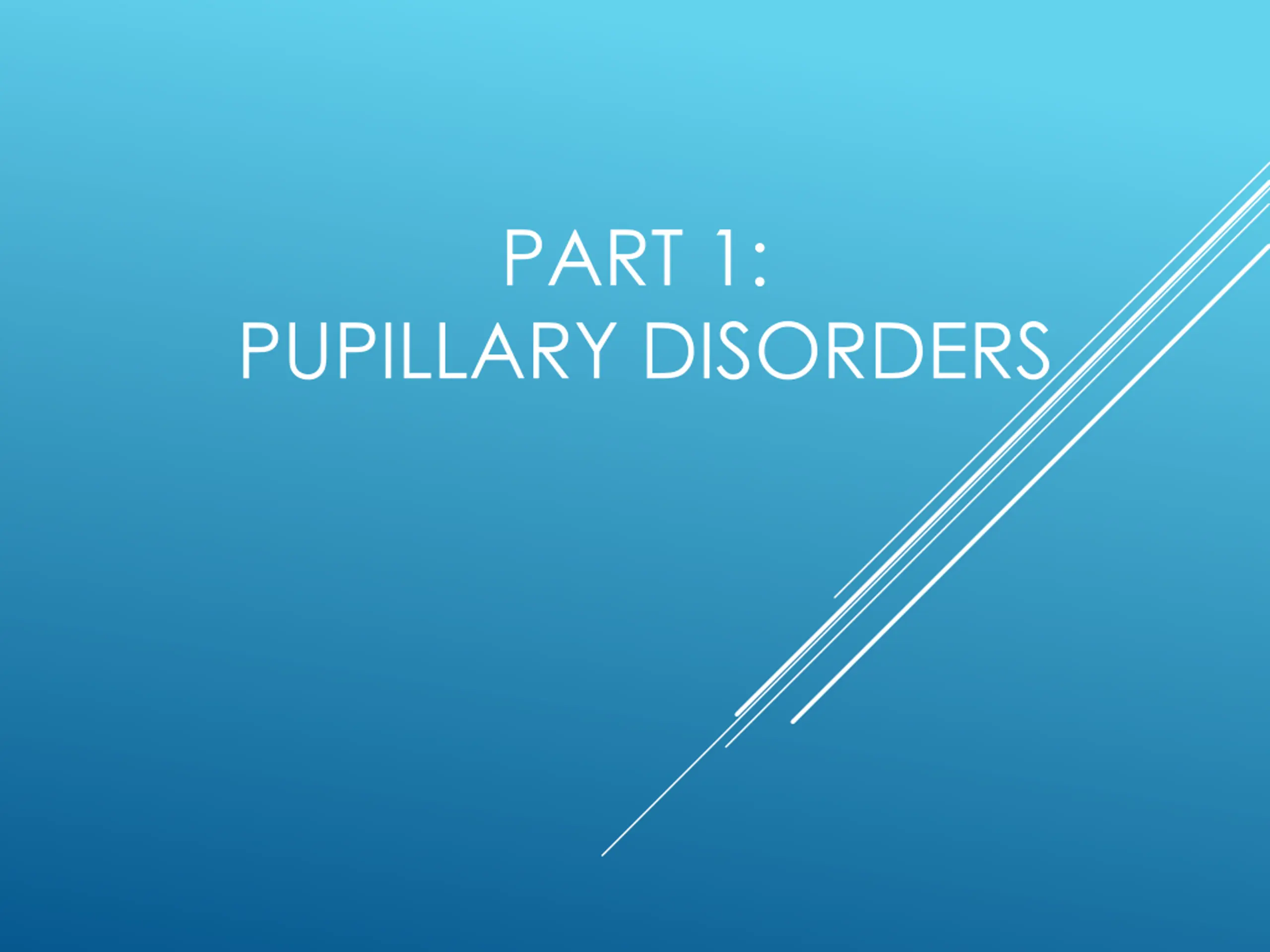 PART 1: PUPILLARY DISORDERS