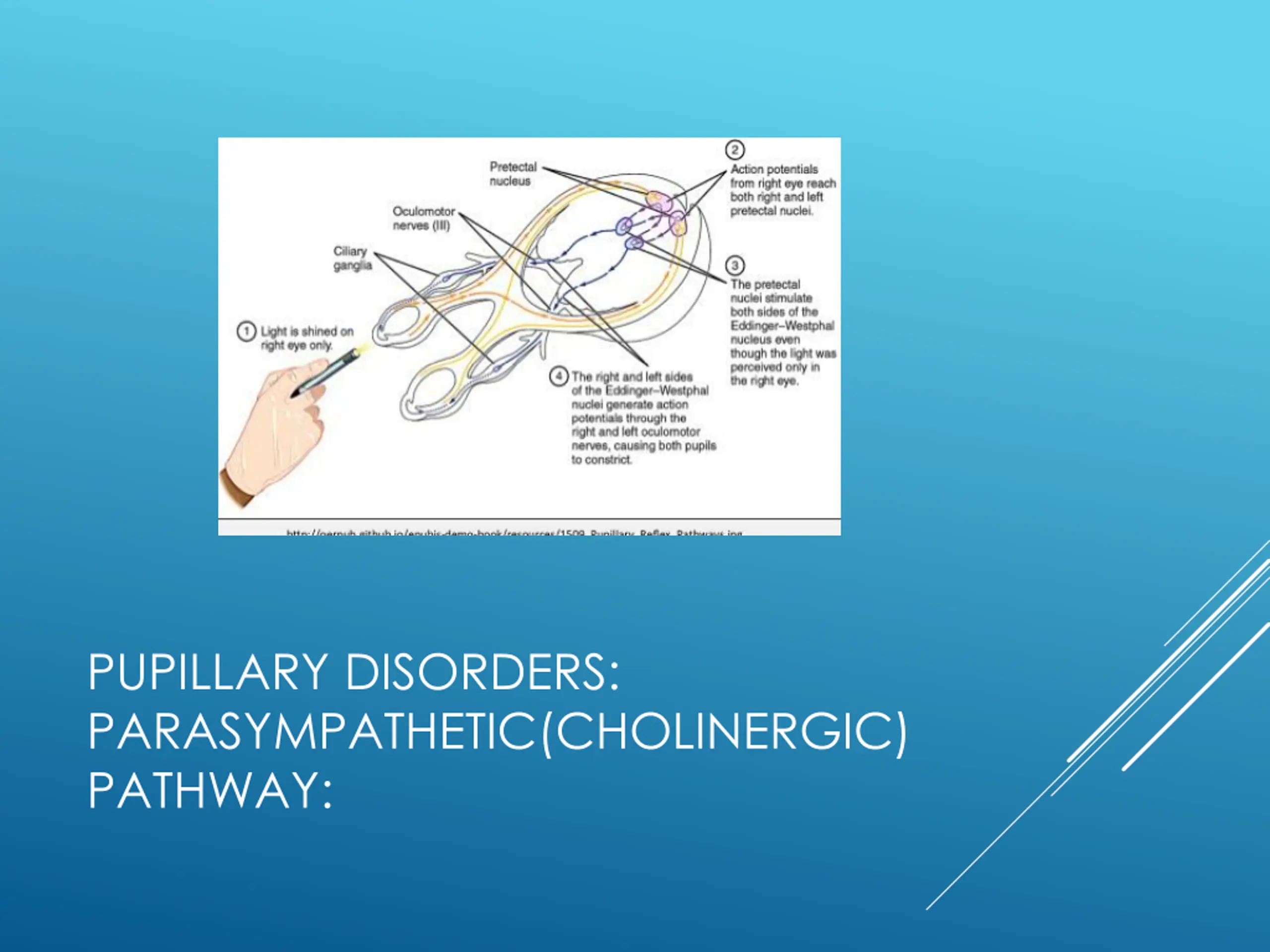 PUPILLARY DISORDERS: PARASYMPATHETIC(CHOLINERGIC) PATHWAY:
