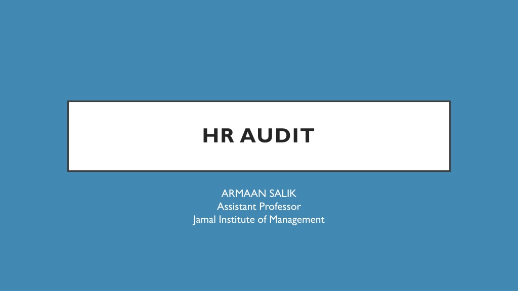 HR AUDIT ARMAAN SALIK Assistant Professor Jamal Institute of Management
