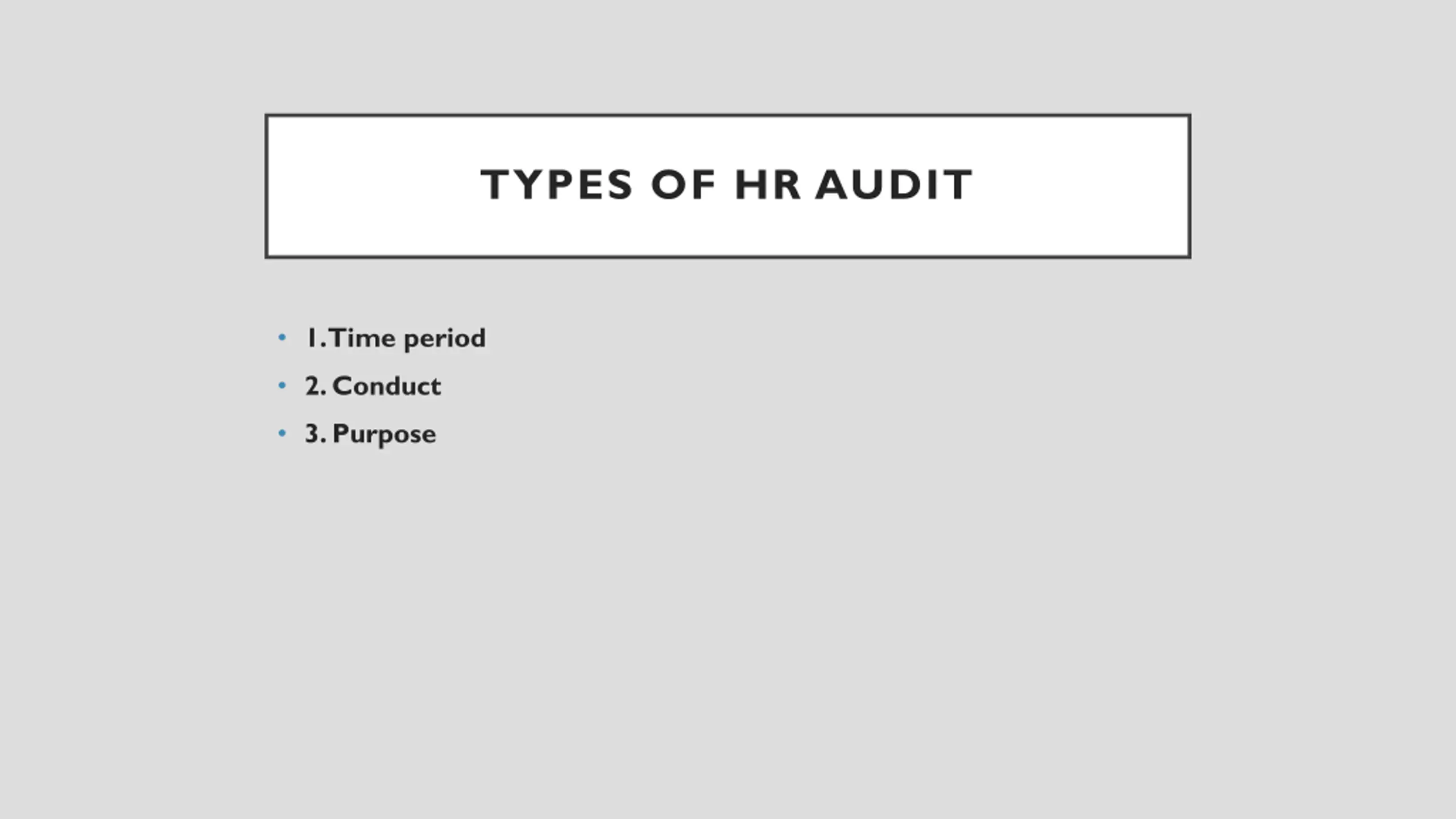 TYPES OF HR AUDIT 1. Time period 2. Conduct 3. Purpose