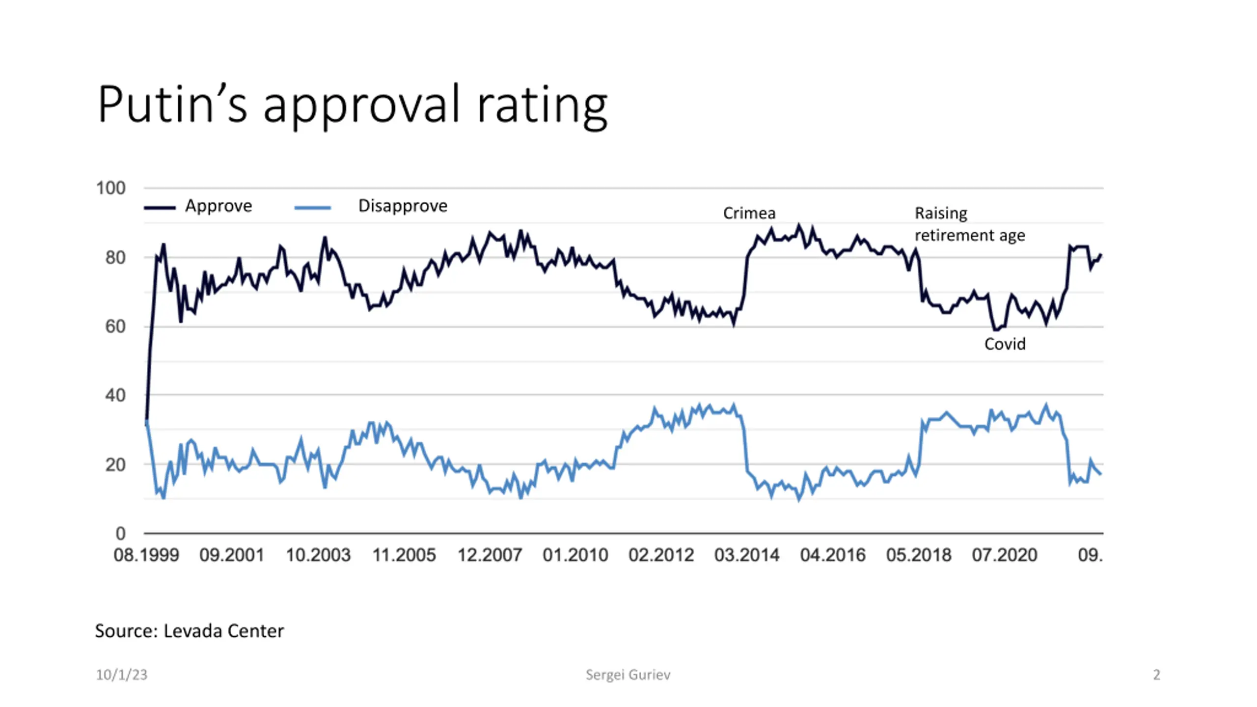 Putins approval rating Approve Disapprove Crimea Raising retirement age Covid Source: Levada Center 10/1/23 Sergei Guriev 2
