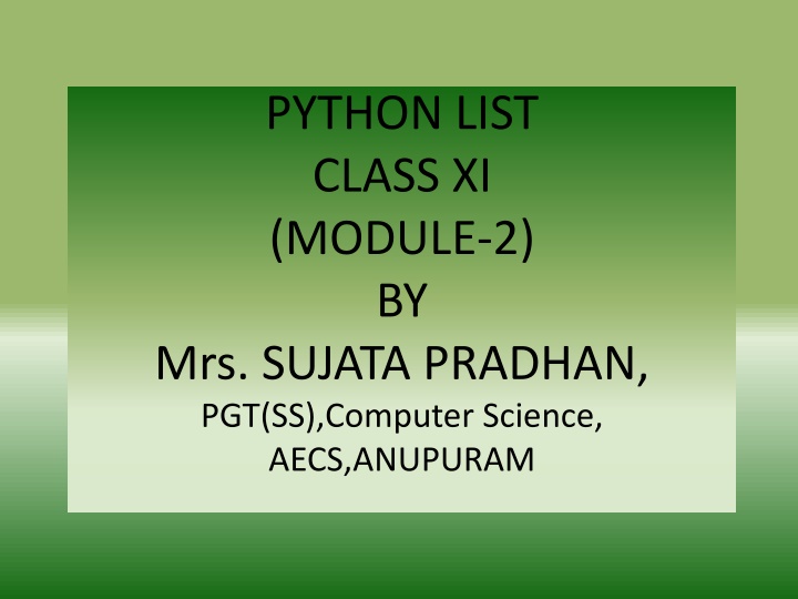 PYTHON LIST CLASS XI (MODULE-2) BY Mrs. SUJATA PRADHAN, PGT(SS),Computer Science, AECS,ANUPURAM