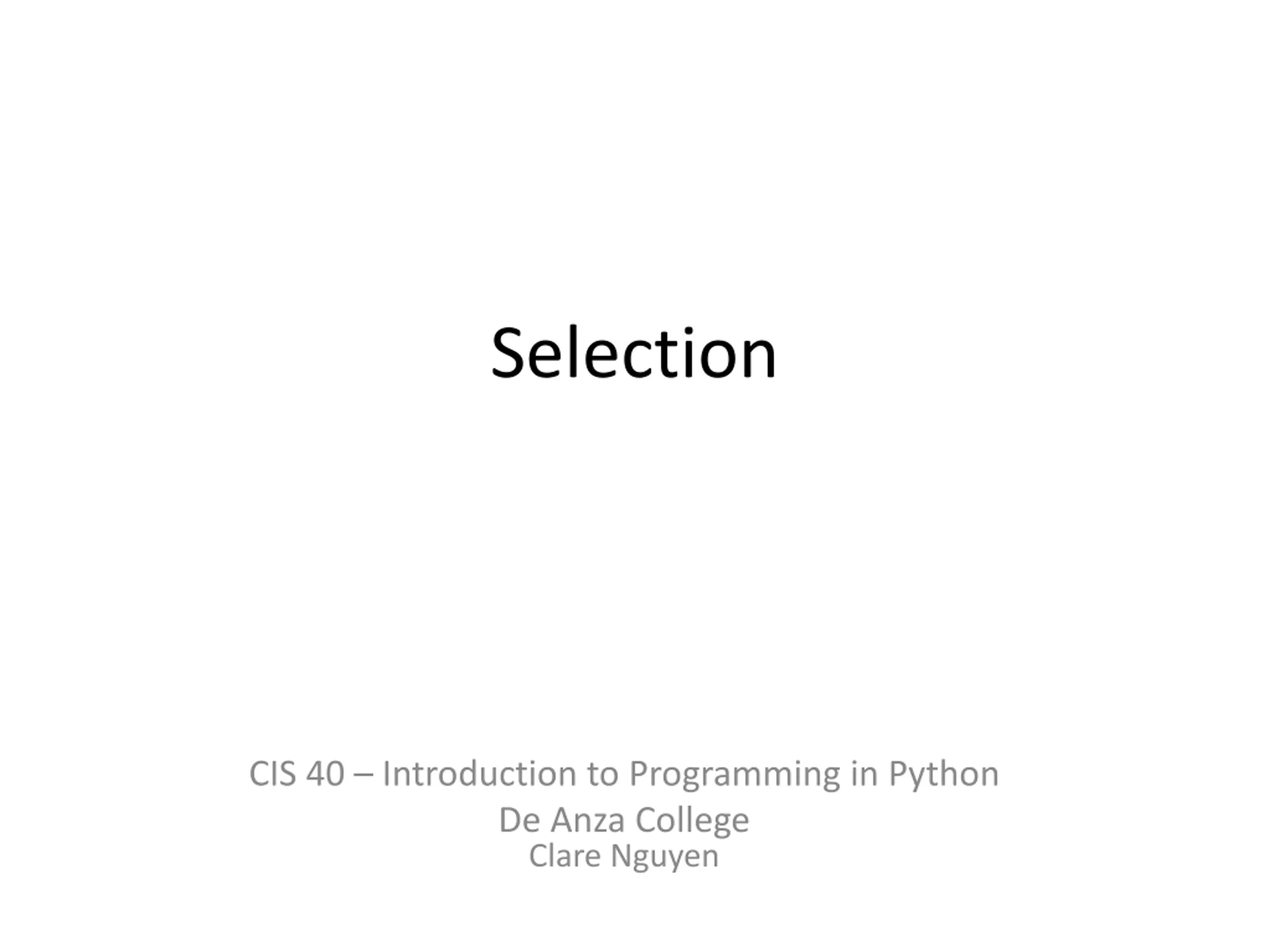 Selection CIS 40 Introduction to Programming in Python De Anza College Clare Nguyen