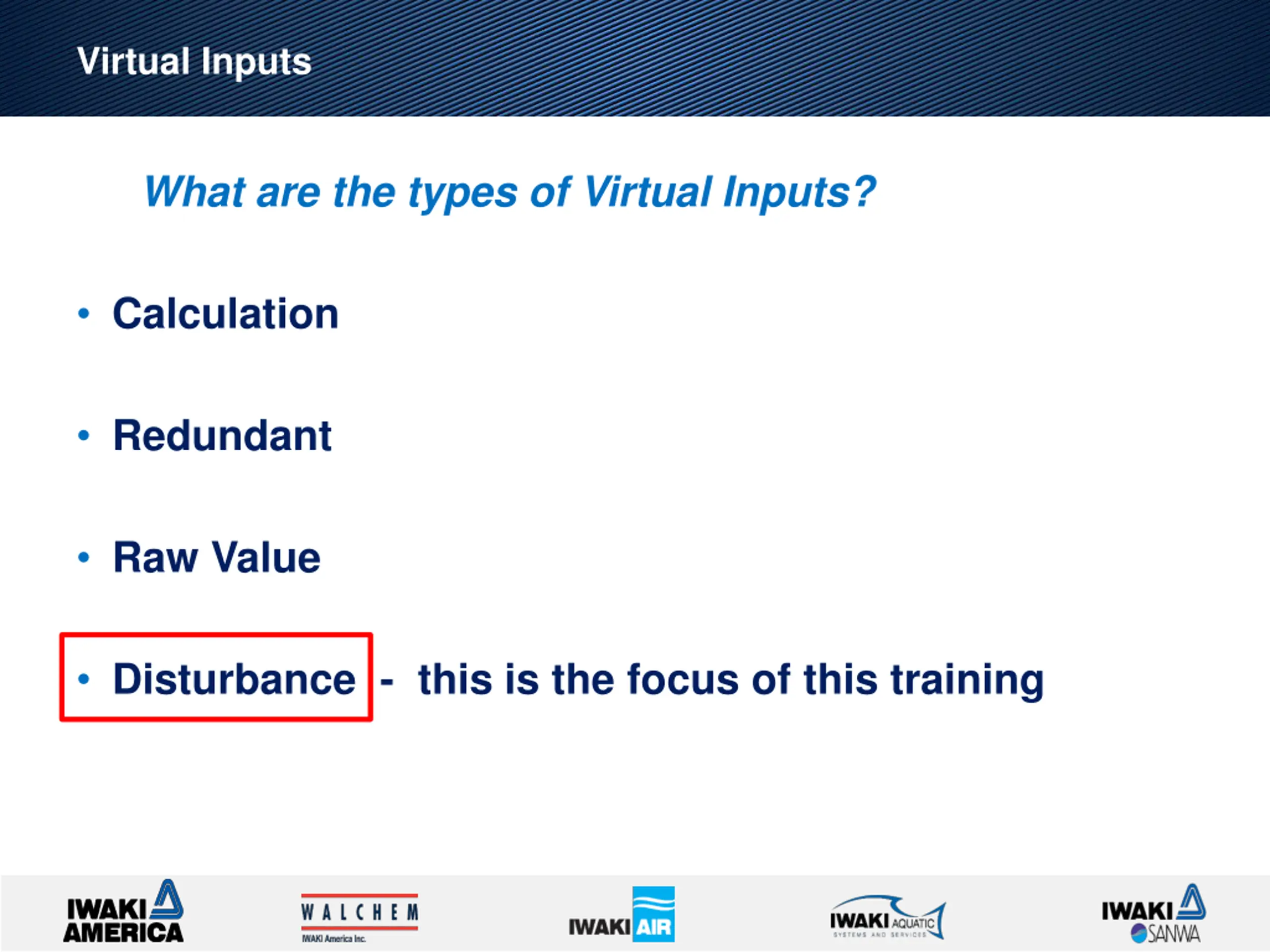 Virtual Inputs What are the types of Virtual Inputs? Calculation Redundant Raw Value Disturbance - this is the focus of this training