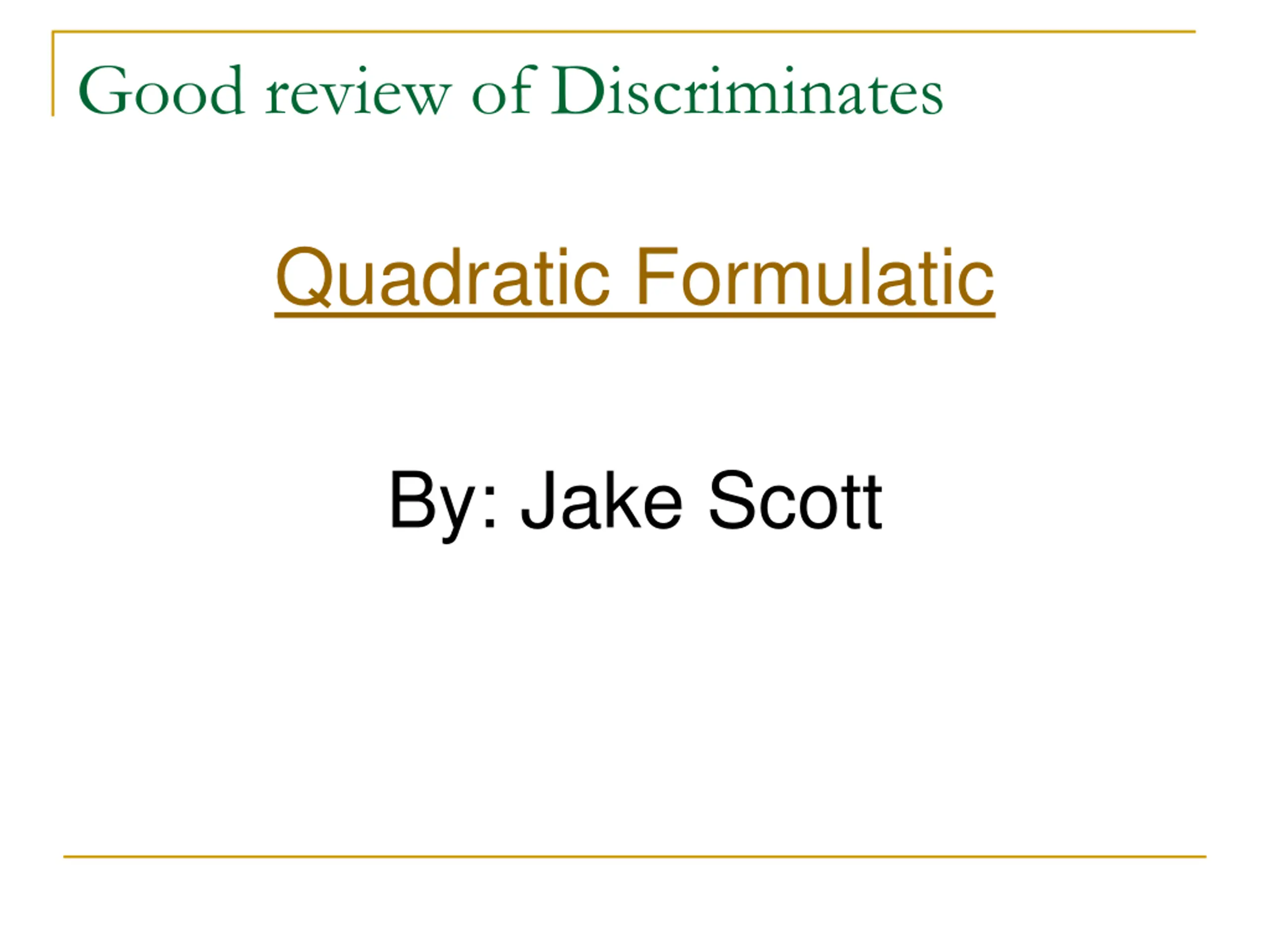 Good review of Discriminates Quadratic Formulatic By: Jake Scott