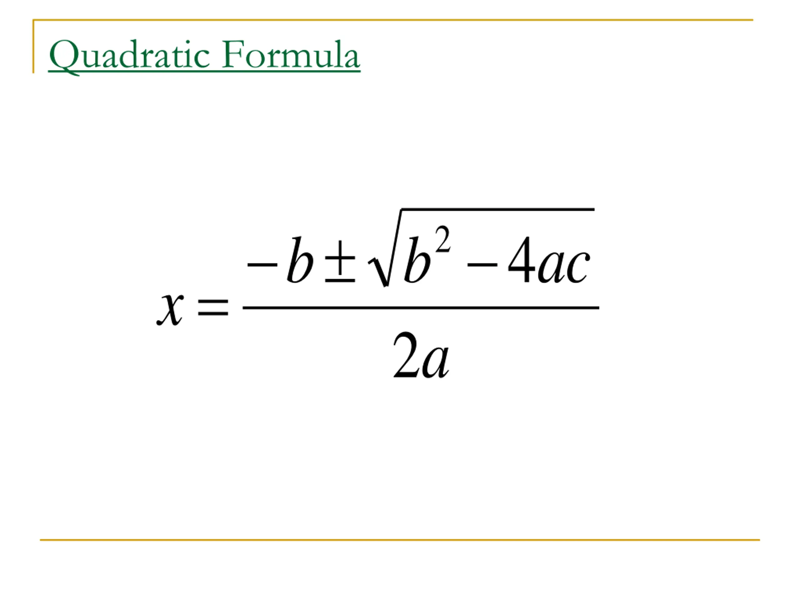 When to use the Quadratic Formula (anytime you want) Use the quadratic formula when you can t factor to solve a quadratic equation. (or when you re stuck on how to factor the equation.)