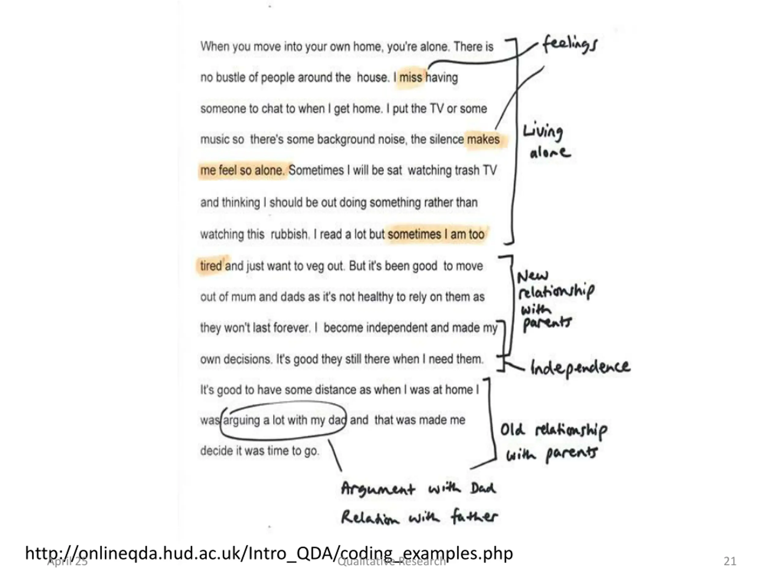 http://onlineqda.hud.ac.uk/Intro_QDA/coding_examples.php April 25 Qualitative Research 21