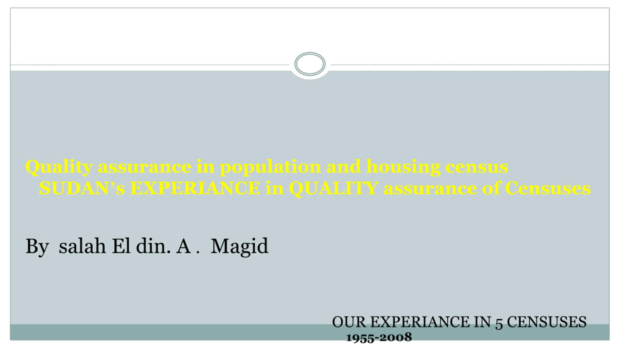 Quality assurance in population and housing census SUDAN s EXPERIANCE in QUALITY assurance of Censuses By salah El din. A . Magid OUR EXPERIANCE IN 5 CENSUSES 1955-2008
