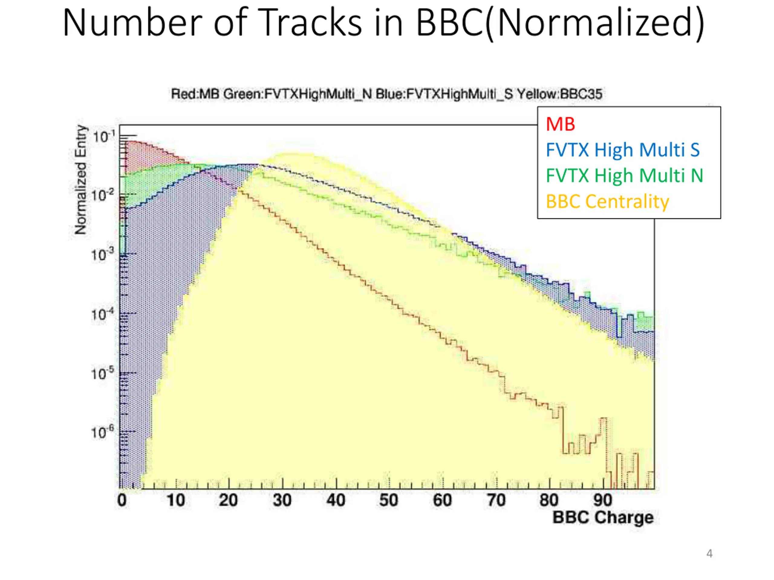 Number of Tracks in BBC(Normalized) MB FVTX High Multi S FVTX High Multi N BBC Centrality 4