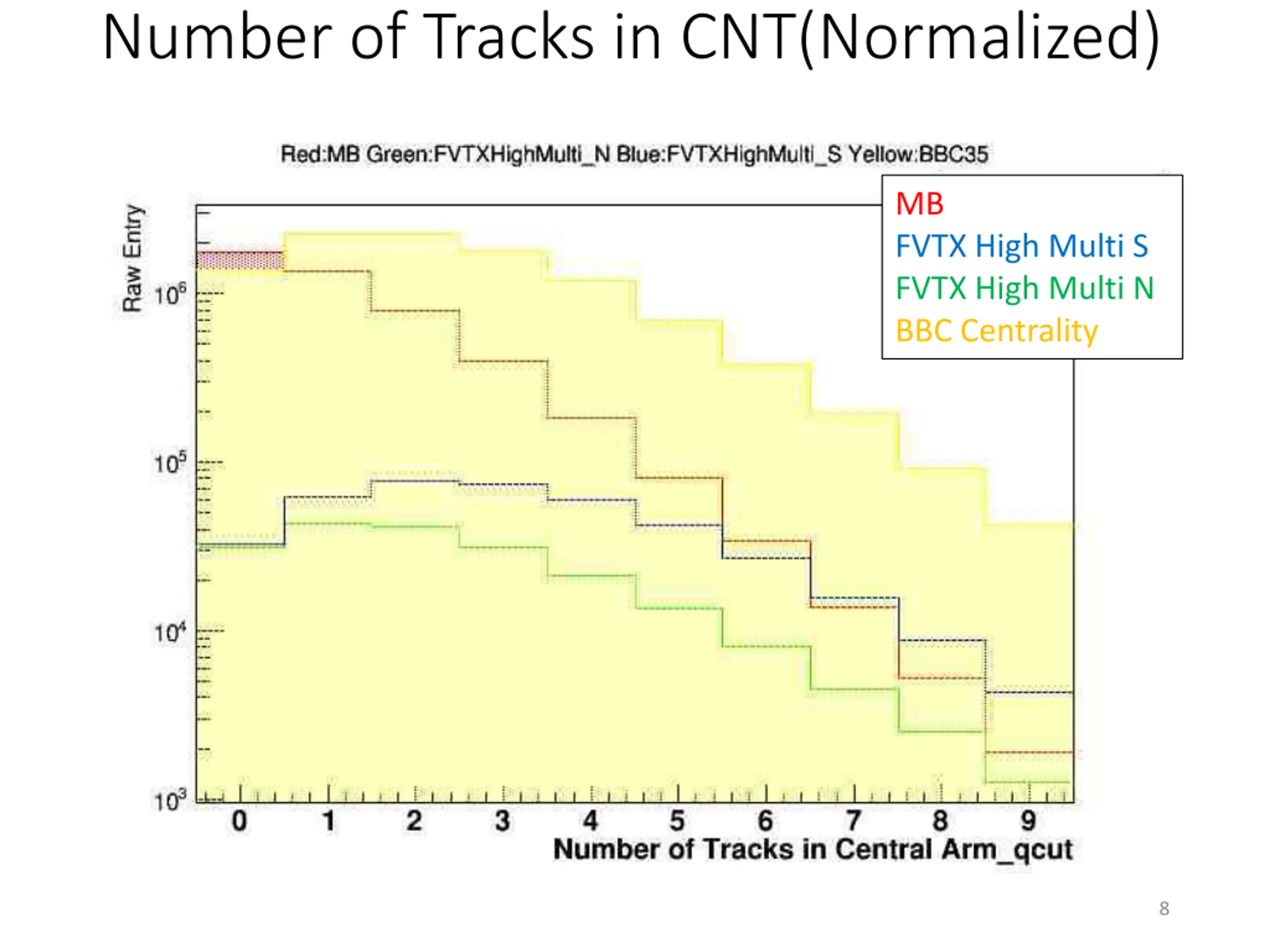 Number of Tracks in CNT(Normalized) MB FVTX High Multi S FVTX High Multi N BBC Centrality 8