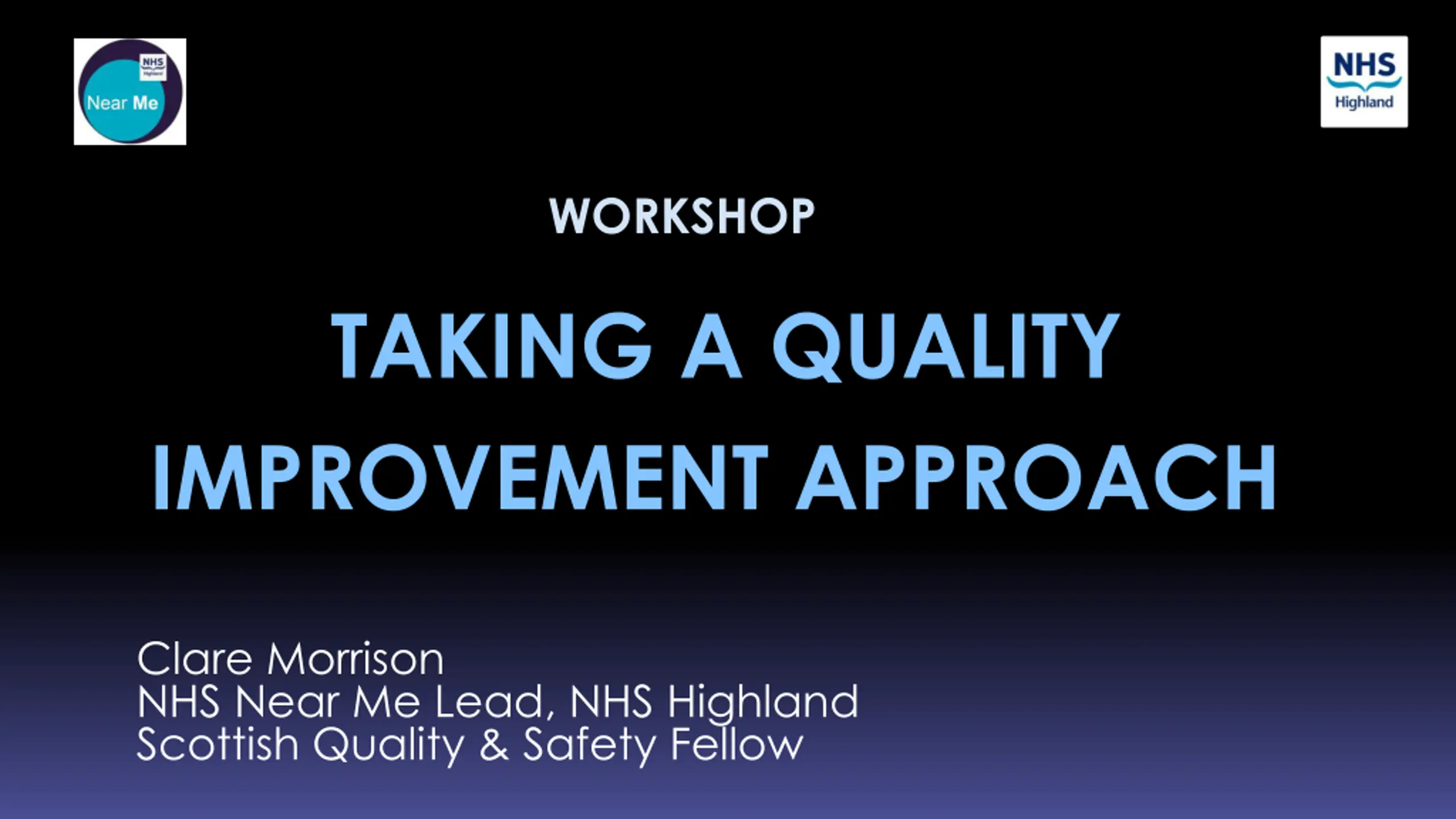 WORKSHOP TAKING A QUALITY IMPROVEMENT APPROACH Clare Morrison NHS Near Me Lead, NHS Highland Scottish Quality & Safety Fellow