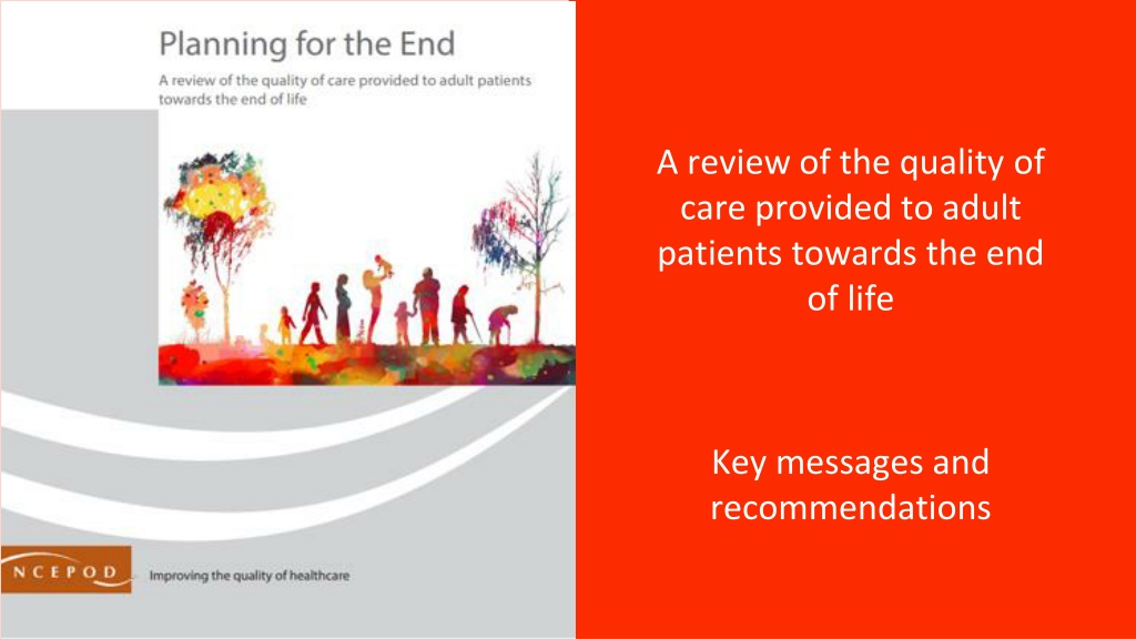 This review focuses on the care provided to adult patients towards the end of life, highlighting key messages and recommendations. It discusses the need for early palliative care, normalization of conversations about death and dying, and areas for improvement in communication and care planning. The study includes data from patients with conditions like dementia, heart failure, lung cancer, and liver disease, emphasizing the importance of addressing end-of-life care needs.