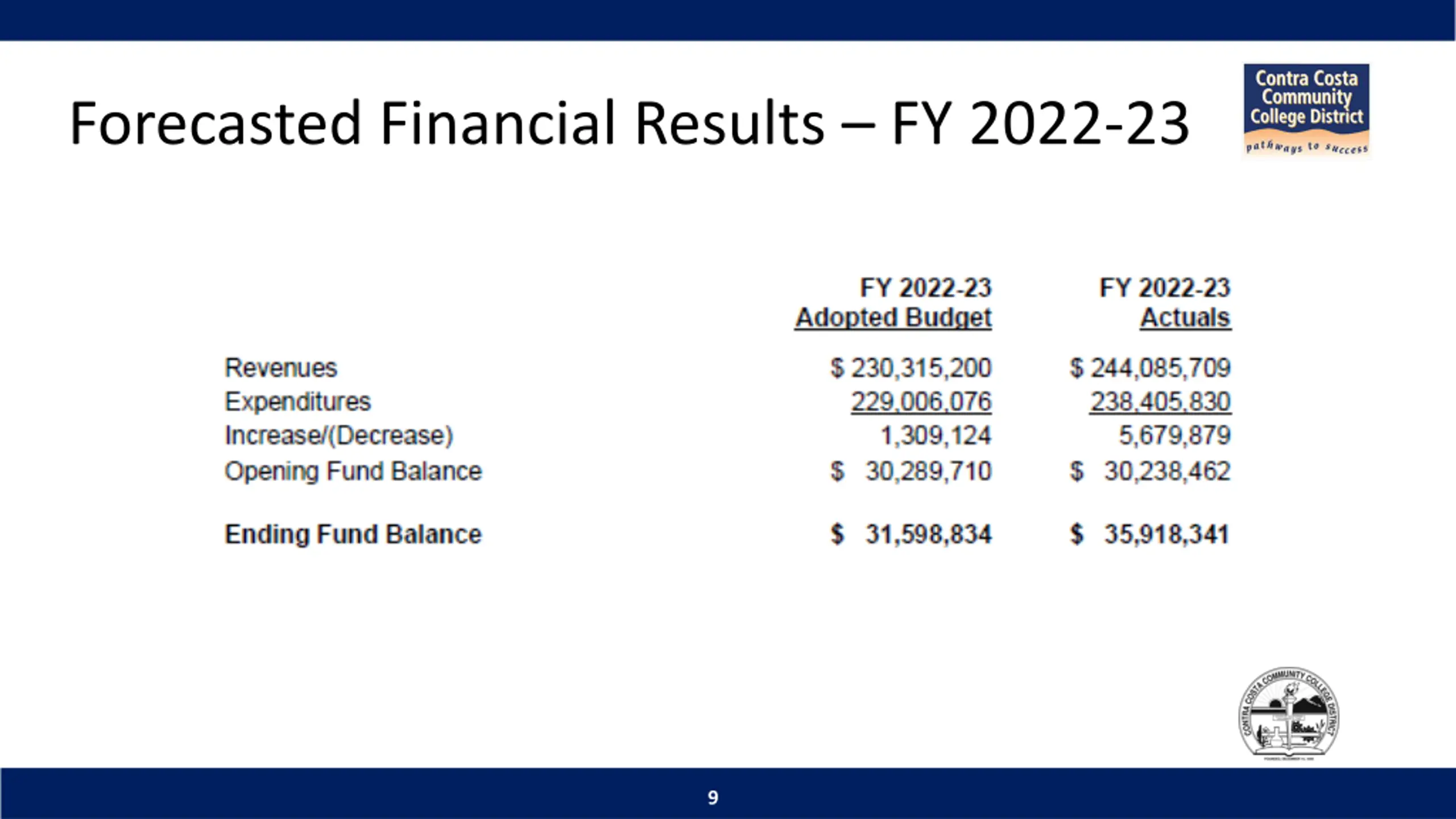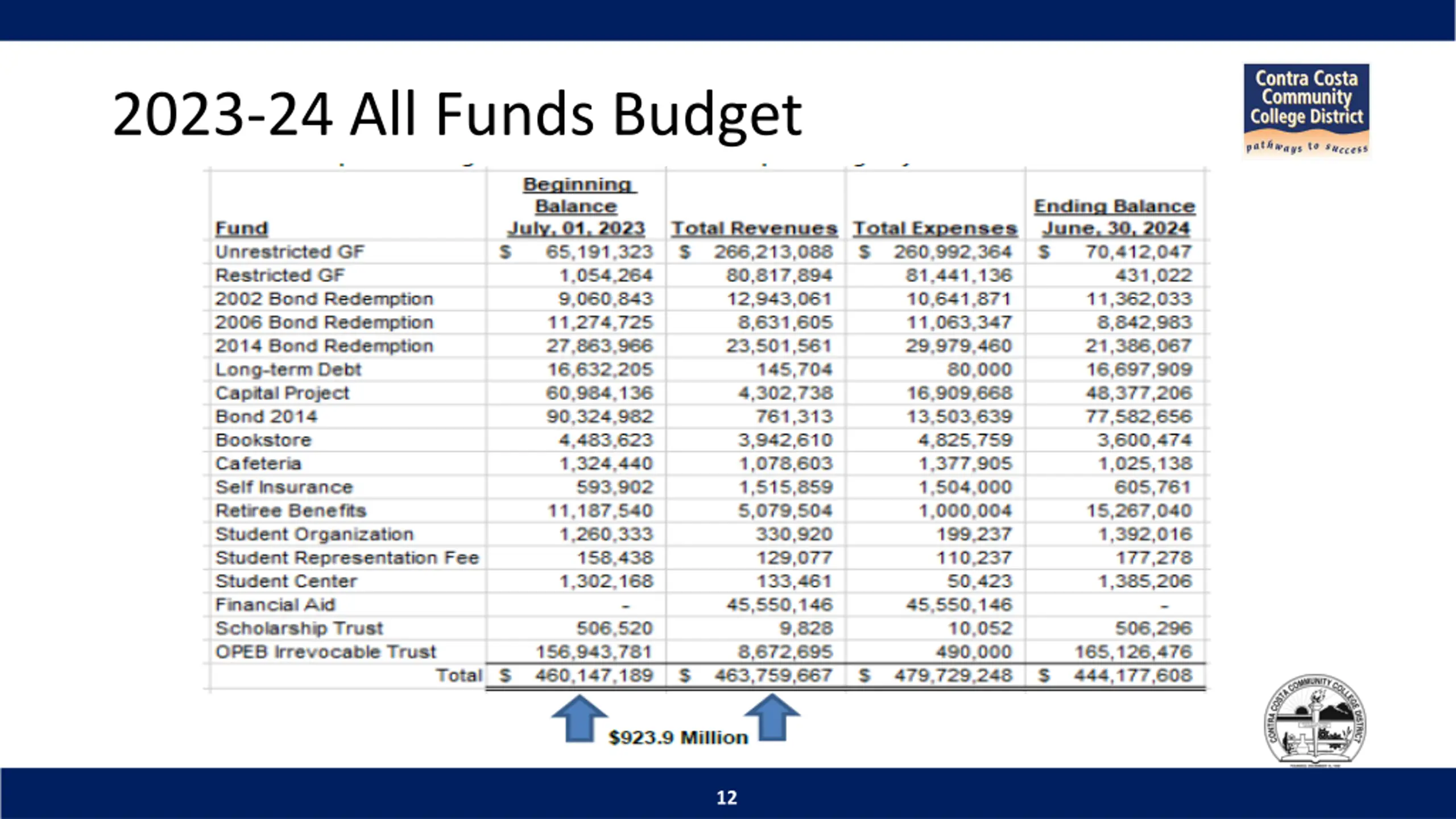 Summary Recommendation It is recommended that the Governing Board adopt the 2023-24 Adoption Budget, totaling $923,906,856 and that the Assistant Secretary be authorized to submit this budget as the Official Budget on the forms prescribed by the State Chancellor s Office as provided in Section 58305 of Title 5 of the California Code of Regulations. 13