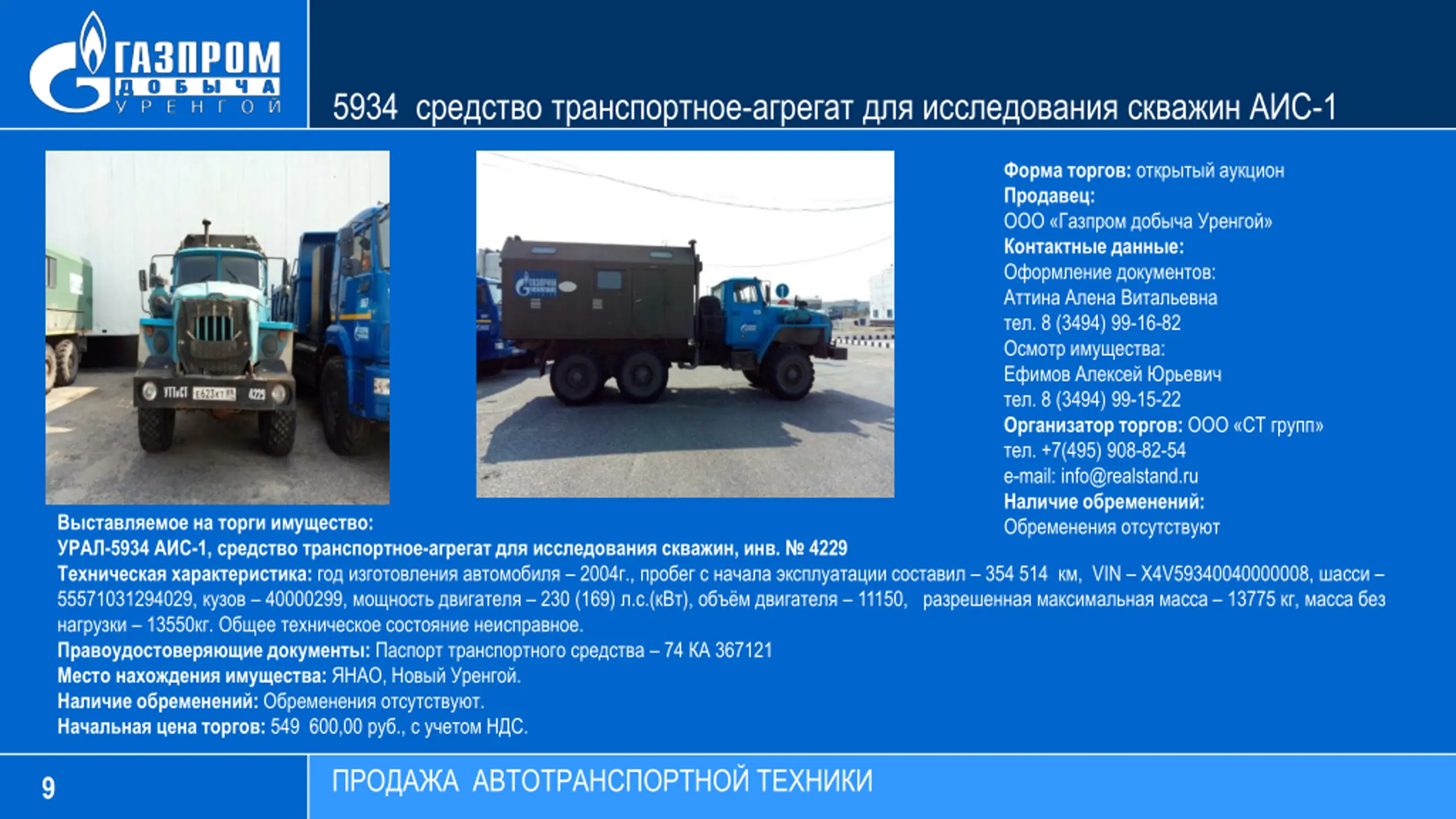 5934 - -1 : : : : . 8 (3494) 99-16-82 : . 8 (3494) 99-15-22 : . +7(495) 908-82-54 e-mail: info@realstand.ru : : -5934 -1, - , . 4229 : 2004 ., 354 514 , VIN 4V59340040000008, 55571031294029, 40000299, 230 (169) . .( ), 11150, 13775 , 13550 . . : 74 367121 : , . : . : 549 600,00 ., . 9