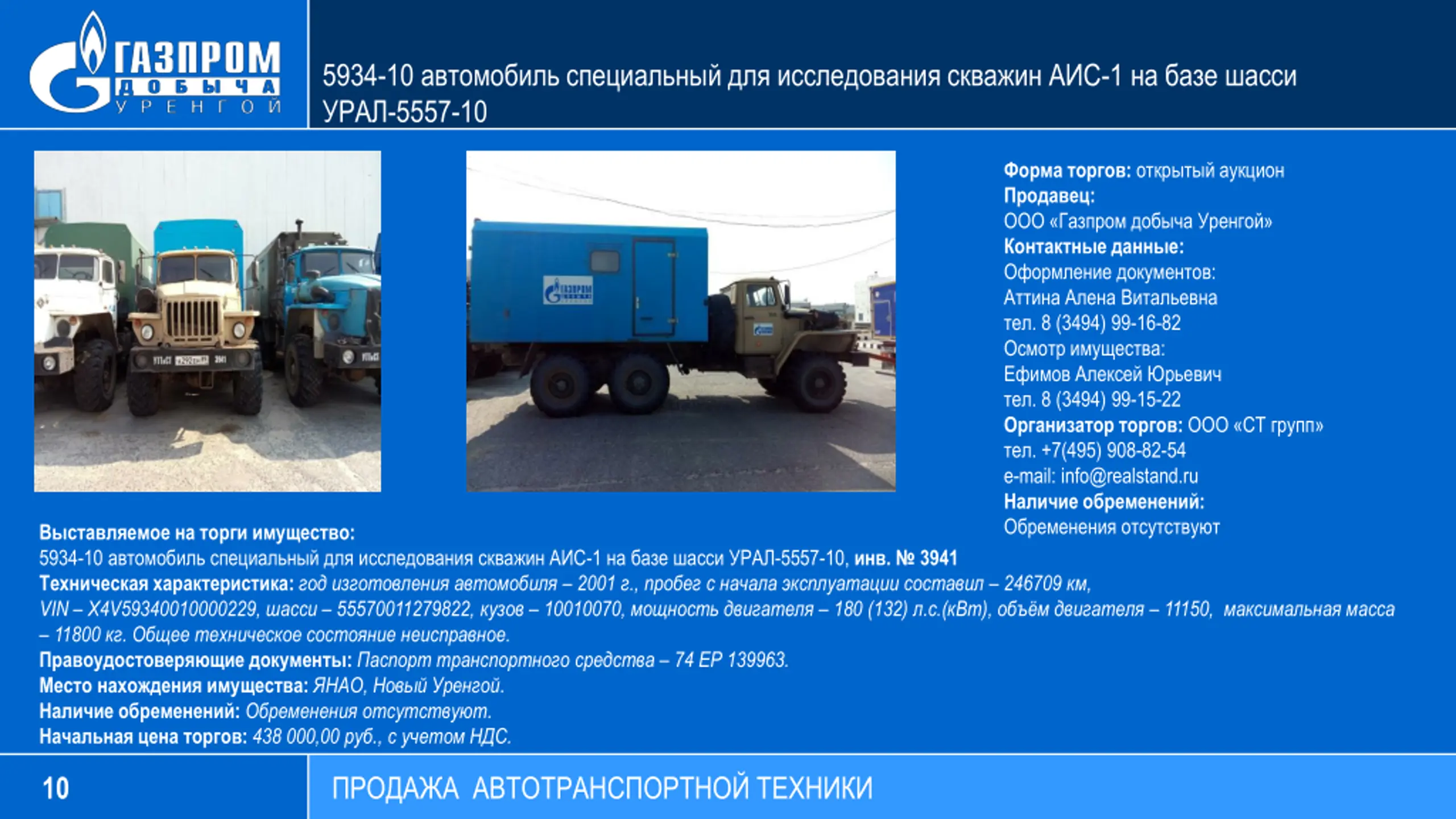 5934-10 -1 -5557-10 : : : : . 8 (3494) 99-16-82 : . 8 (3494) 99-15-22 : . +7(495) 908-82-54 e-mail: info@realstand.ru : : 5934-10 -1 -5557-10, . 3941 : 2001 ., 246709 , VIN 4V59340010000229, 55570011279822, 10010070, 180 (132) . .( ), 11150, 11800 . . : 74 139963. : , . : . : 438 000,00 ., . 10