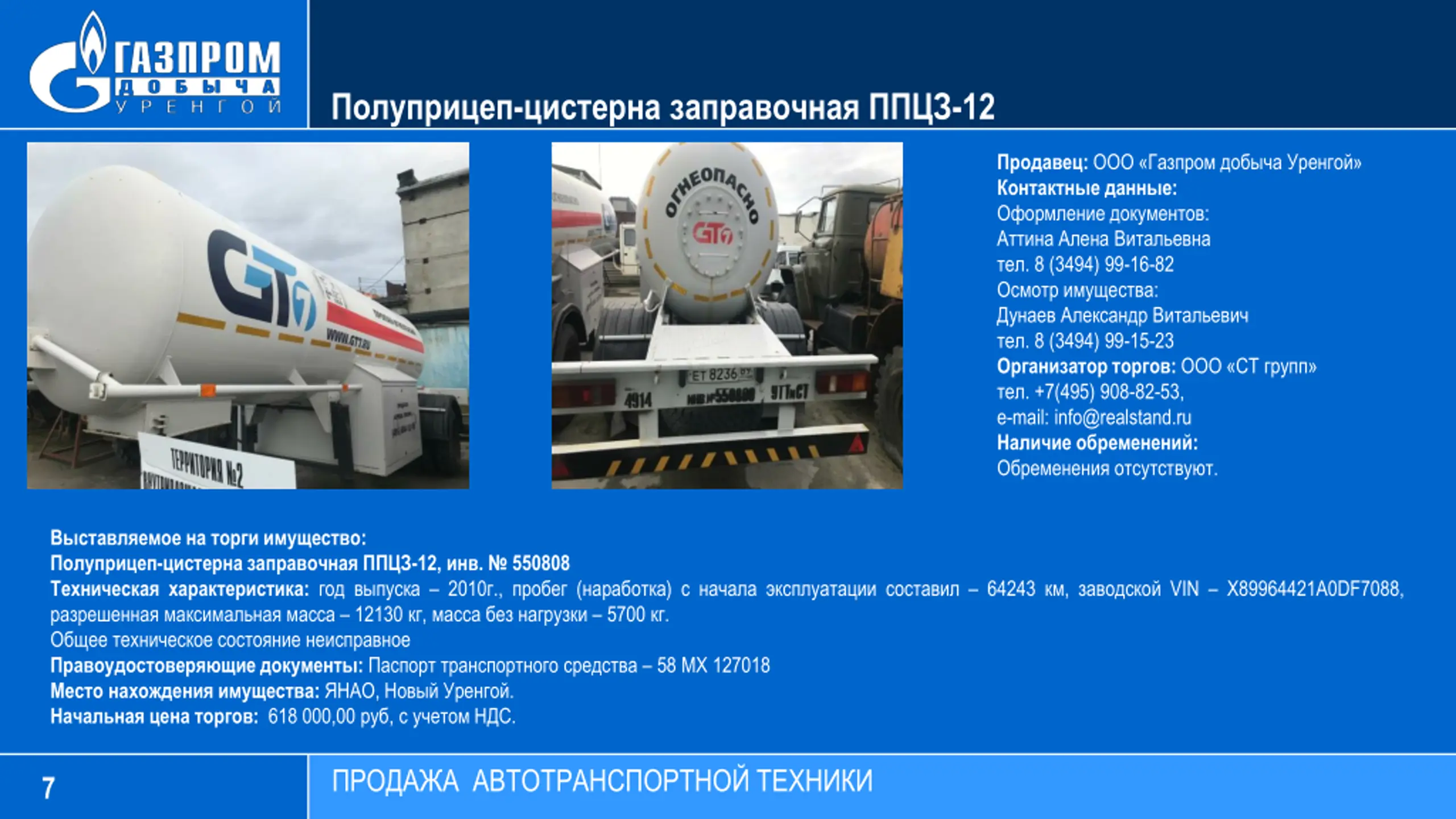 - -12 : : : . 8 (3494) 99-16-82 : . 8 (3494) 99-15-23 : . +7(495) 908-82-53, e-mail: info@realstand.ru : . : - -12, . 550808 : 2010 ., ( ) 64243 , VIN 89964421 0DF7088, 12130 , 5700 . : 58 127018 : , . : 618 000,00 , . 7