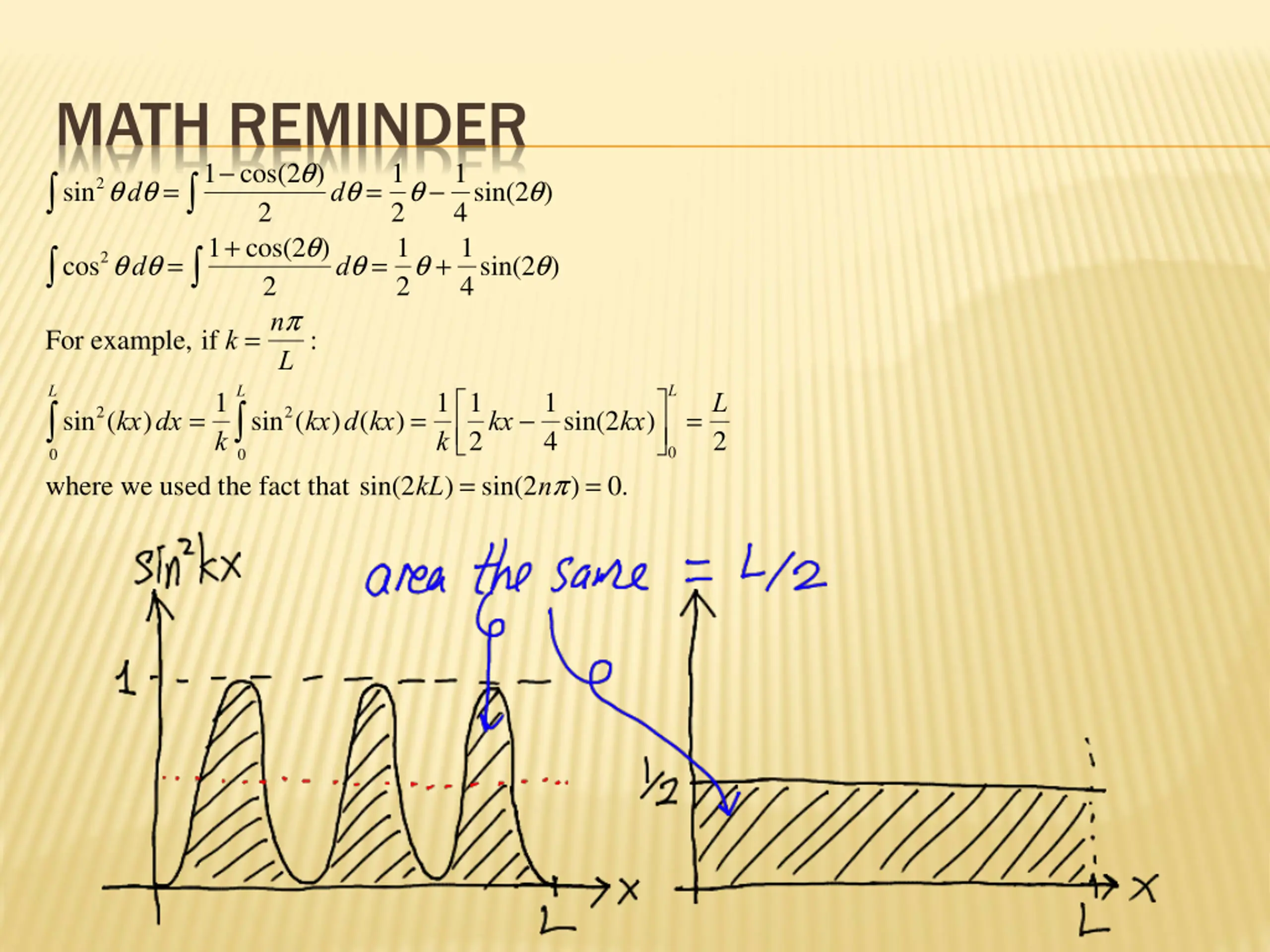 MATH REMINDER sin2qdq 2 2 For example, if k =np L L k 0 where we used the fact that sin(2kL) = sin(2np) = 0. 1-cos(2q) =1 2q -1 =1 = dq 4sin(2q) 1+cos(2q) 2q +1 cos2qdq = dq 4sin(2q) : L L =1 =1 1 2kx -1 =L sin2(kx)dx sin2(kx)d(kx) 4sin(2kx) 2 k 0 0