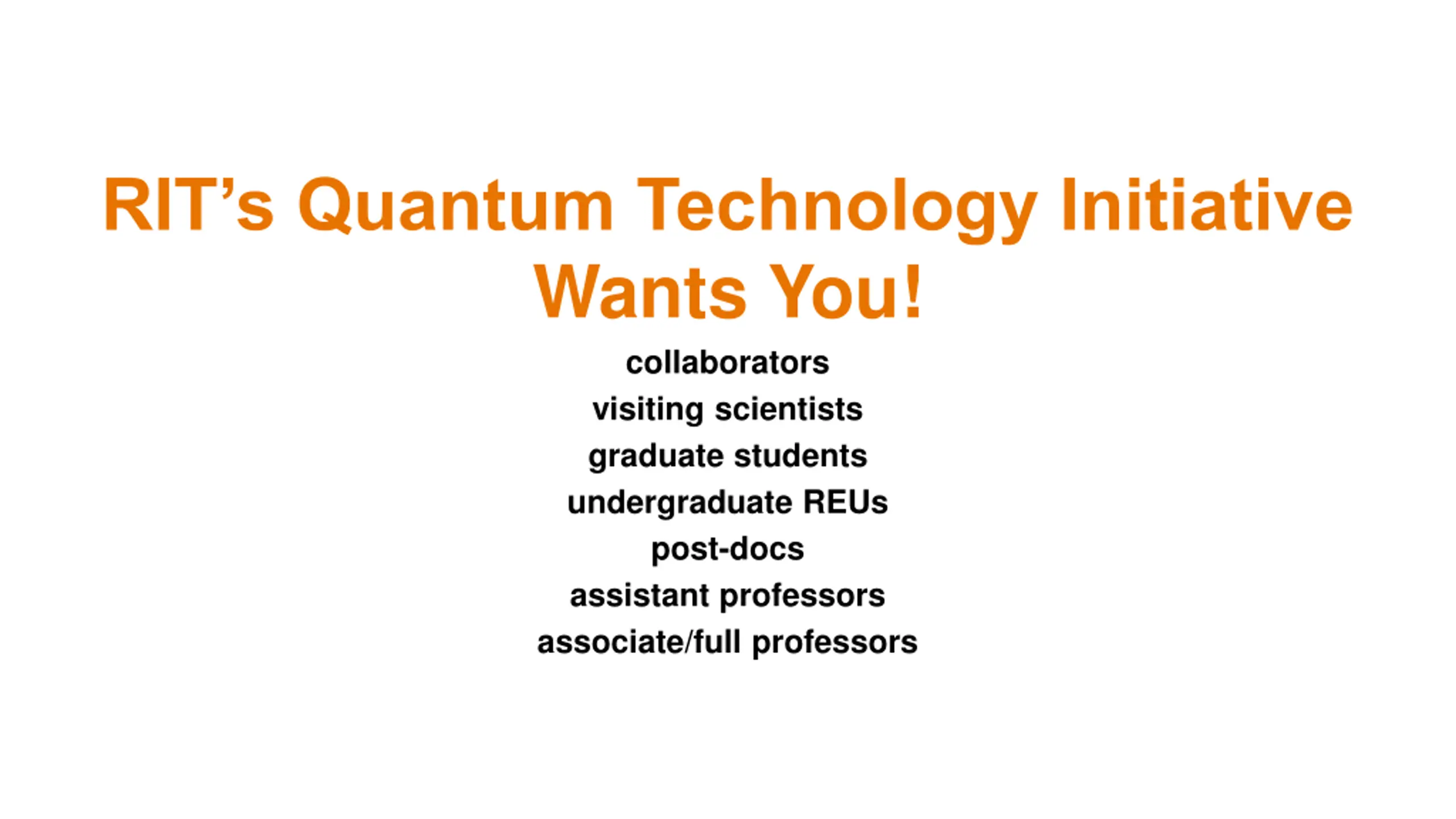 RITs Quantum Technology Initiative Wants You! collaborators visiting scientists graduate students undergraduate REUs post-docs assistant professors associate/full professors