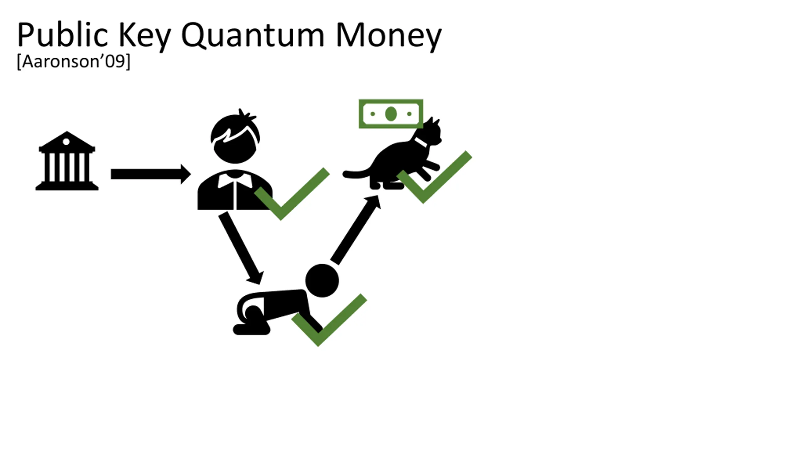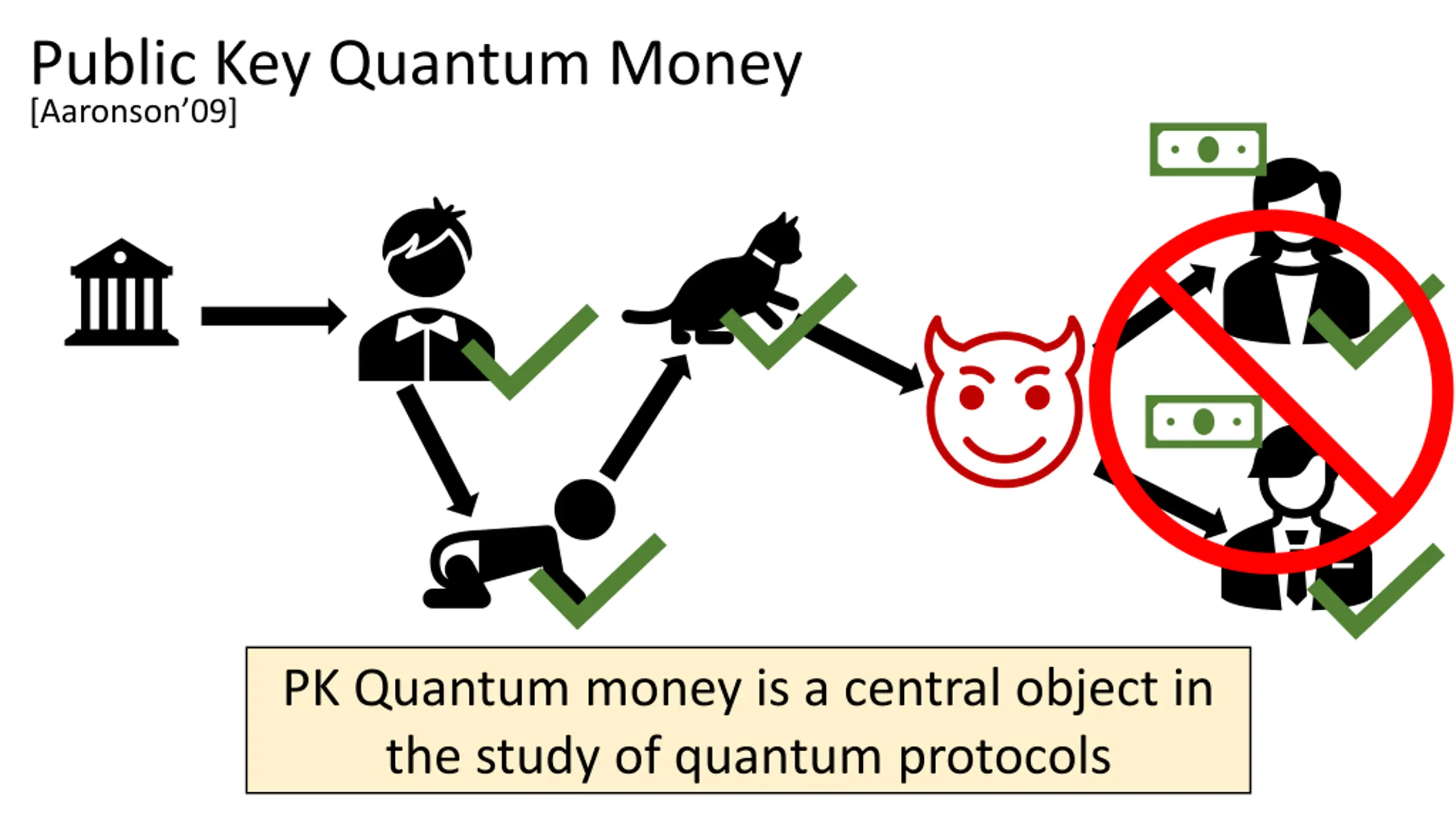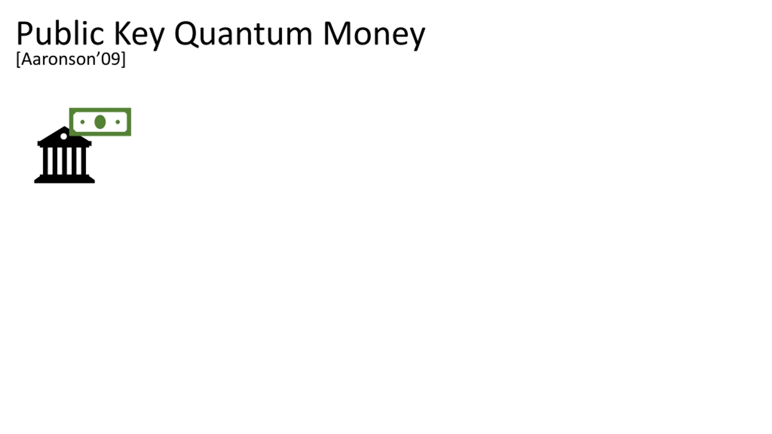 Public Key Quantum Money [Aaronson 09] PK Quantum money is a central object in the study of quantum protocols